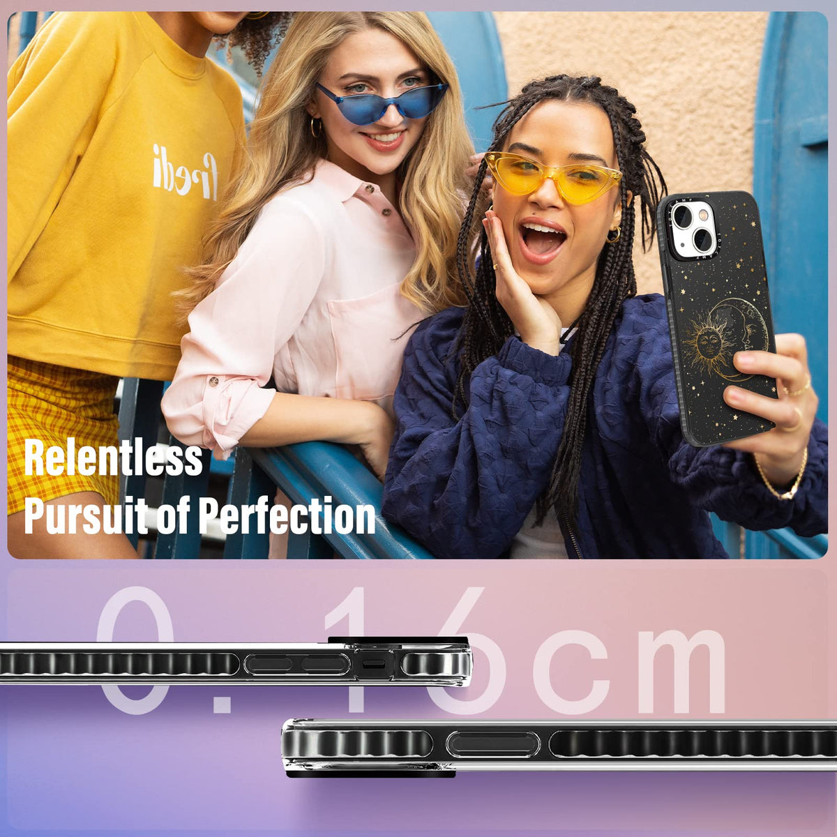Toycamp For Iphone 13 Case, Sun Moon Stars Design For Women Mens Girls Boys Teens Cool Fantasy Glitter Print Case With Ring Kick