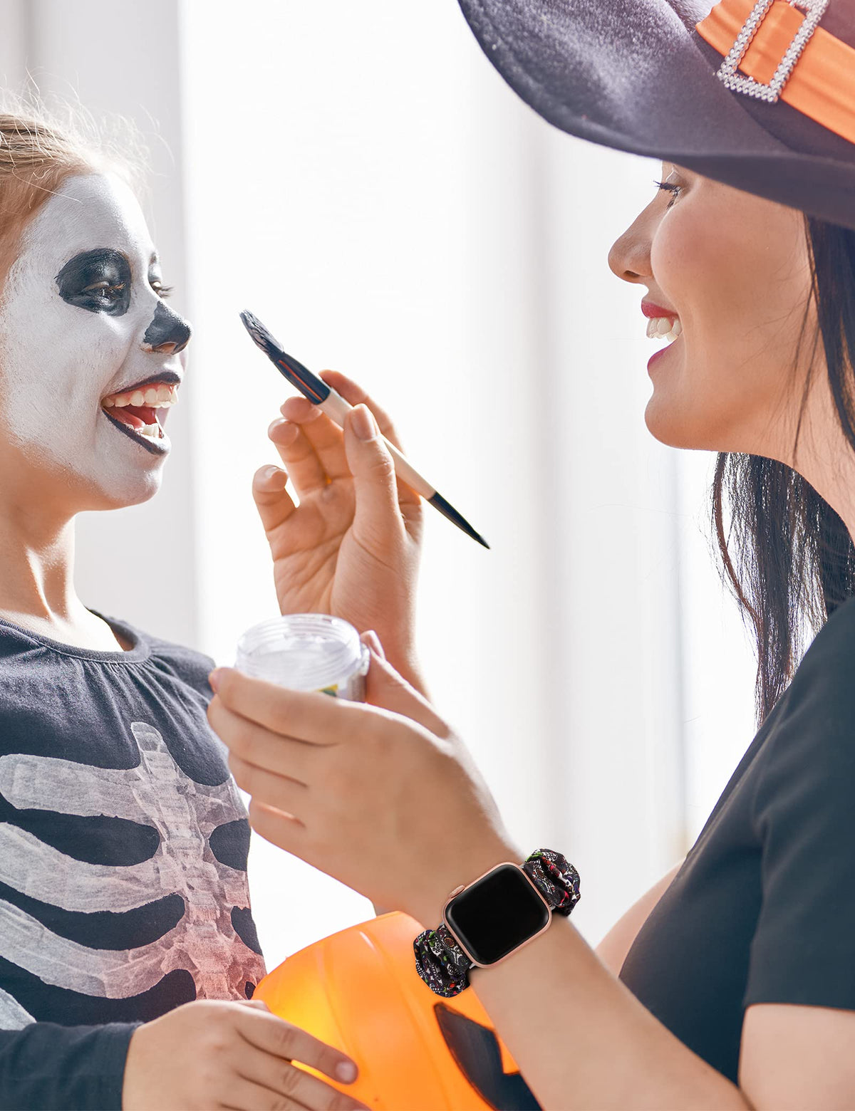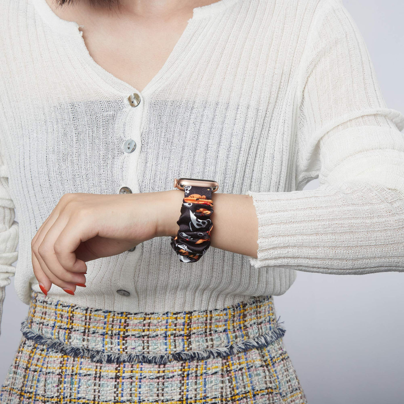 Toyouths 3 Pcs Compatible With Apple Watch Band Halloween Scrunchies 49/45/44/42Mm Cloth Soft Pattern Printed Fabric Bracelet Wo
