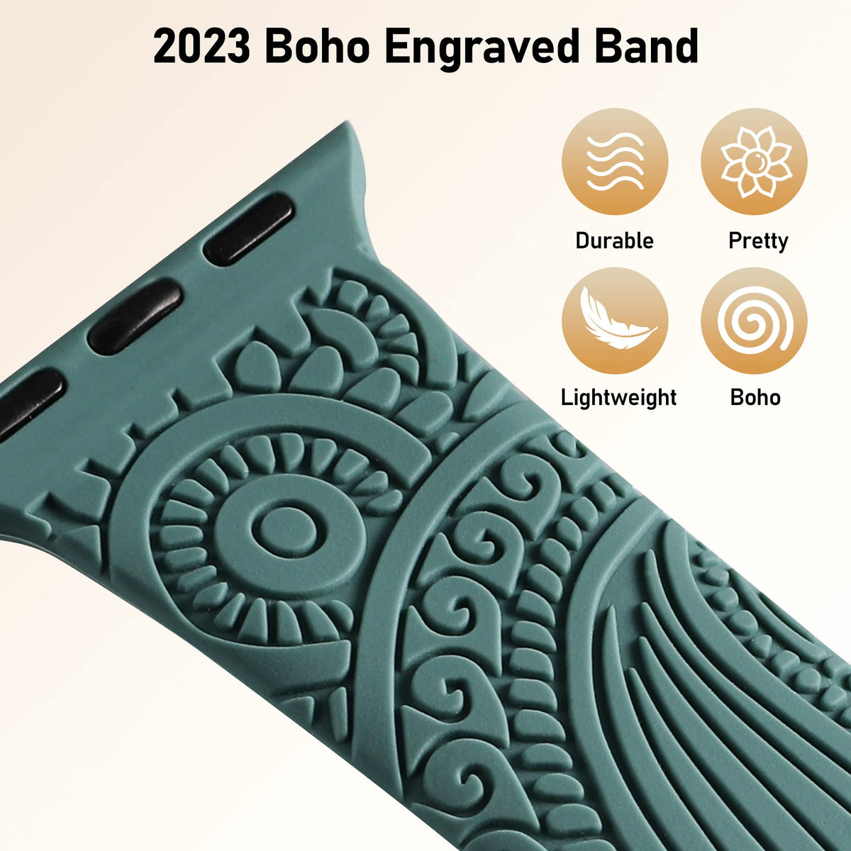 Q: Is the TOYOUTHS Boho Engraved Band compatible with all Apple Watch sizes?A: Yes, the TOYOUTHS Boho Engraved Band is compatible with Apple Watch Series 9, 8, 7, SE, 6, 5, 4, 3, 2, and 1, fitting sizes 38mm, 40mm, and 41mm, as well as 42mm, 44mm, 45mm, and 49mm.
