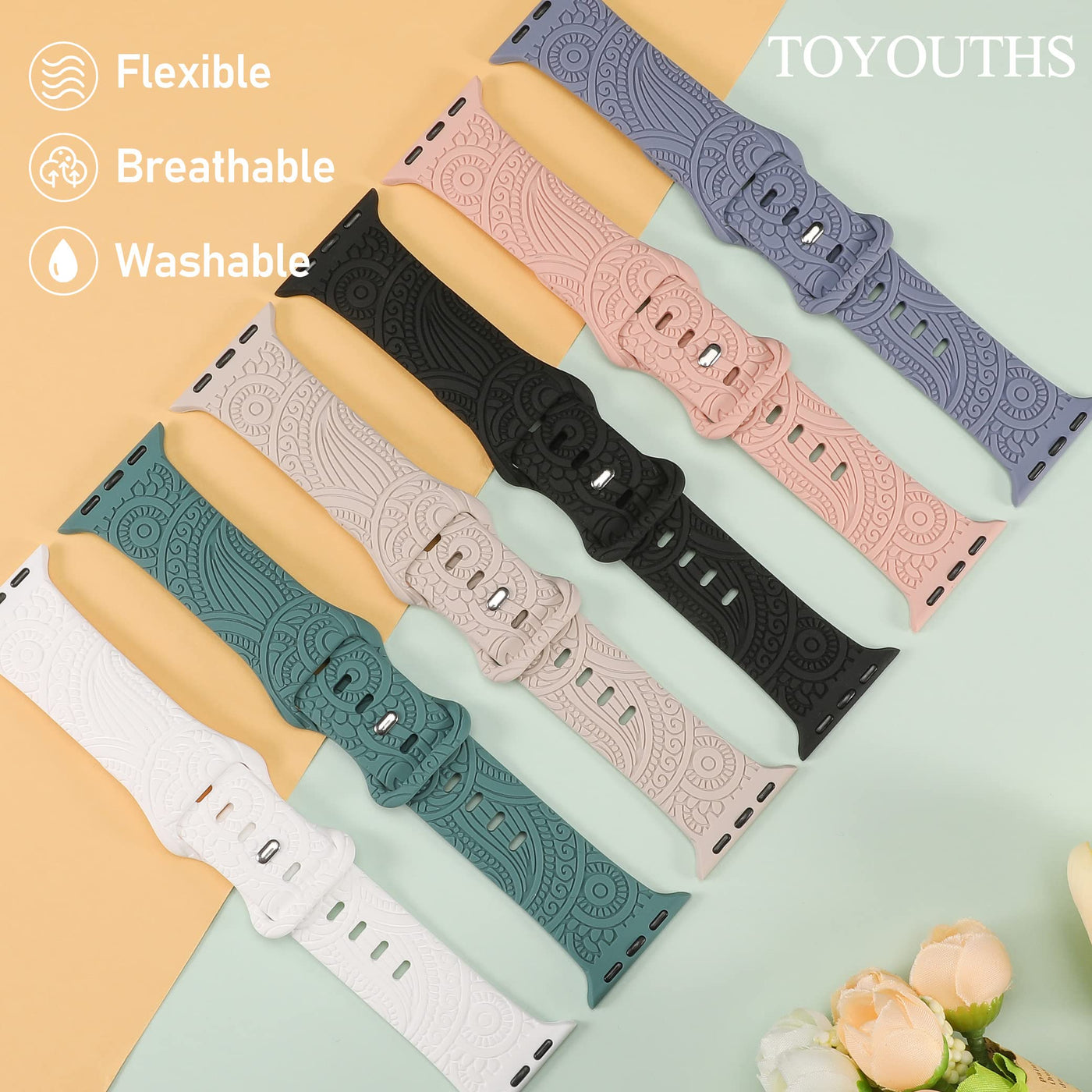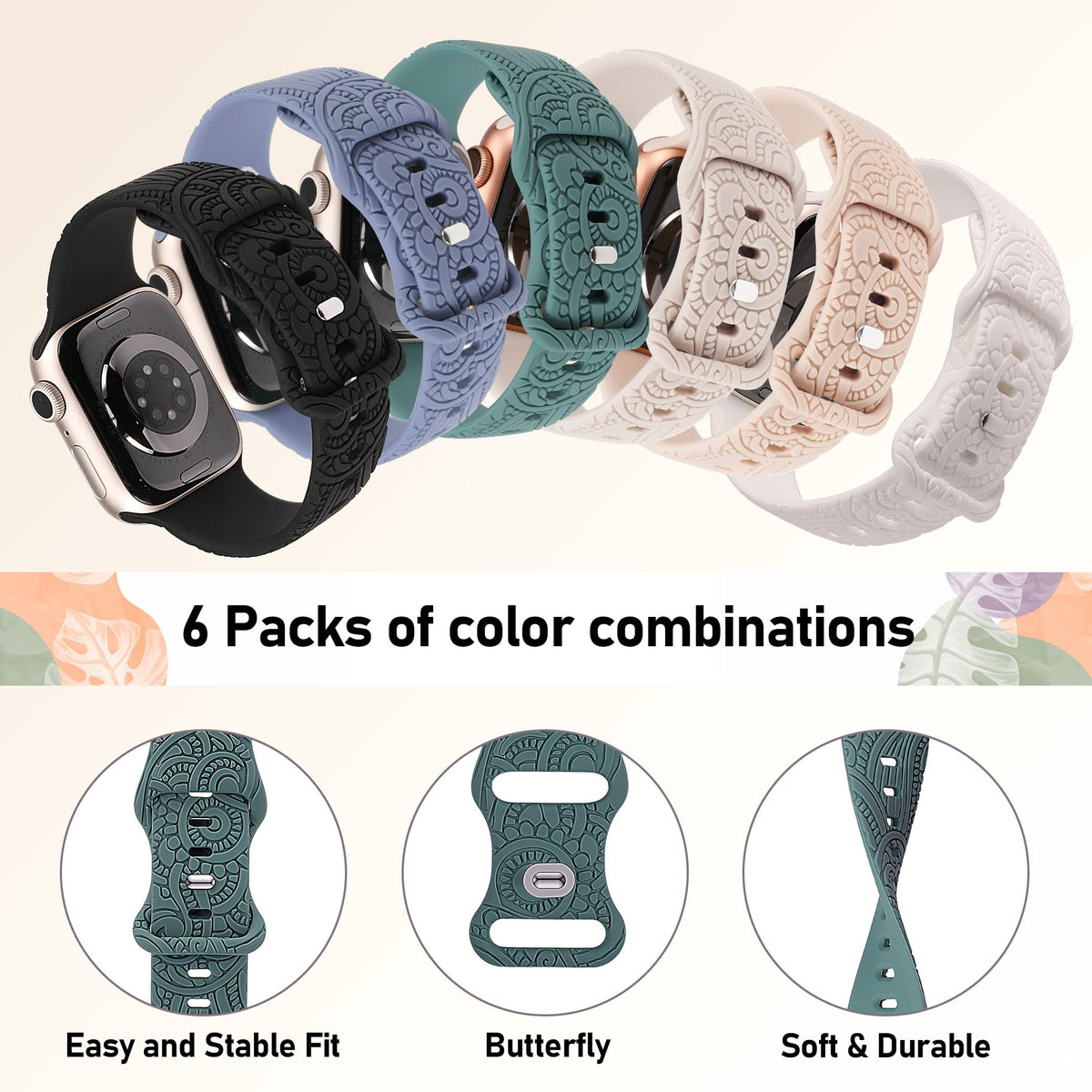 Toyouths 6 Packs Boho Engraved Bands Compatible With Apple Watch Bands 38Mm 40Mm 41Mm Women Girl, Western Lace Silicone Fancy Fa