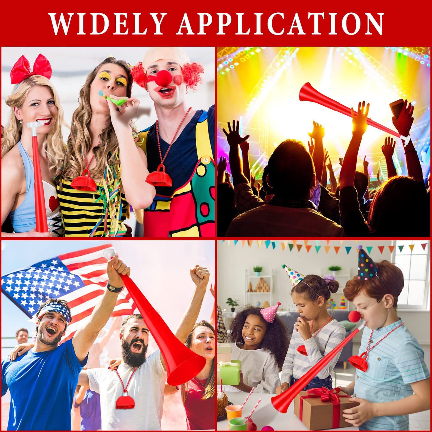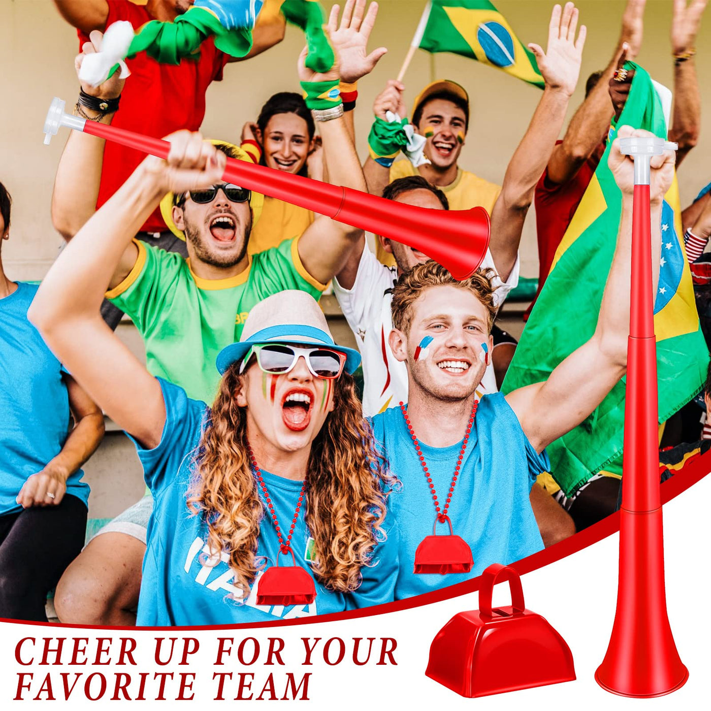 Treela 12 Pcs Collapsible Stadium Horn And Metal Cowbells 24 Inch Vuvuzela Horn Blow Plastic Trumpet Cow Bells With Handle Noise