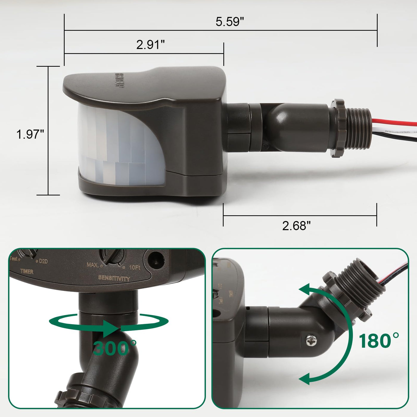 Treewell 2 Pack 240-Degree Replacement Motion Detector, Adjustable Time & Detection Sensitivity Up To 60 Feet Range, 3 Working Modes Pir Motion Sensor For Security Floodlight, Brown, Ul Listed
