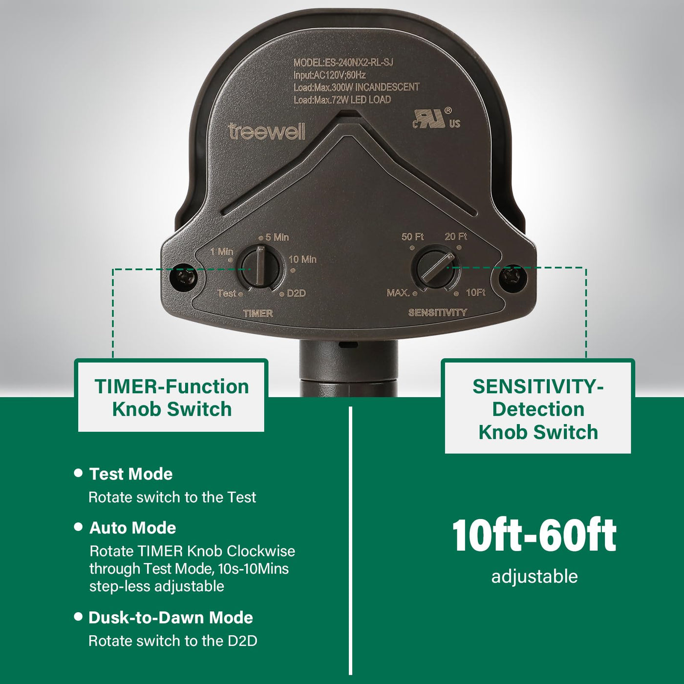 Treewell 2 Pack 240 Degree Replacement Motion Detector, Adjustable Time & Detection Sensitivity Up To 60 Feet Range, 3 Working M