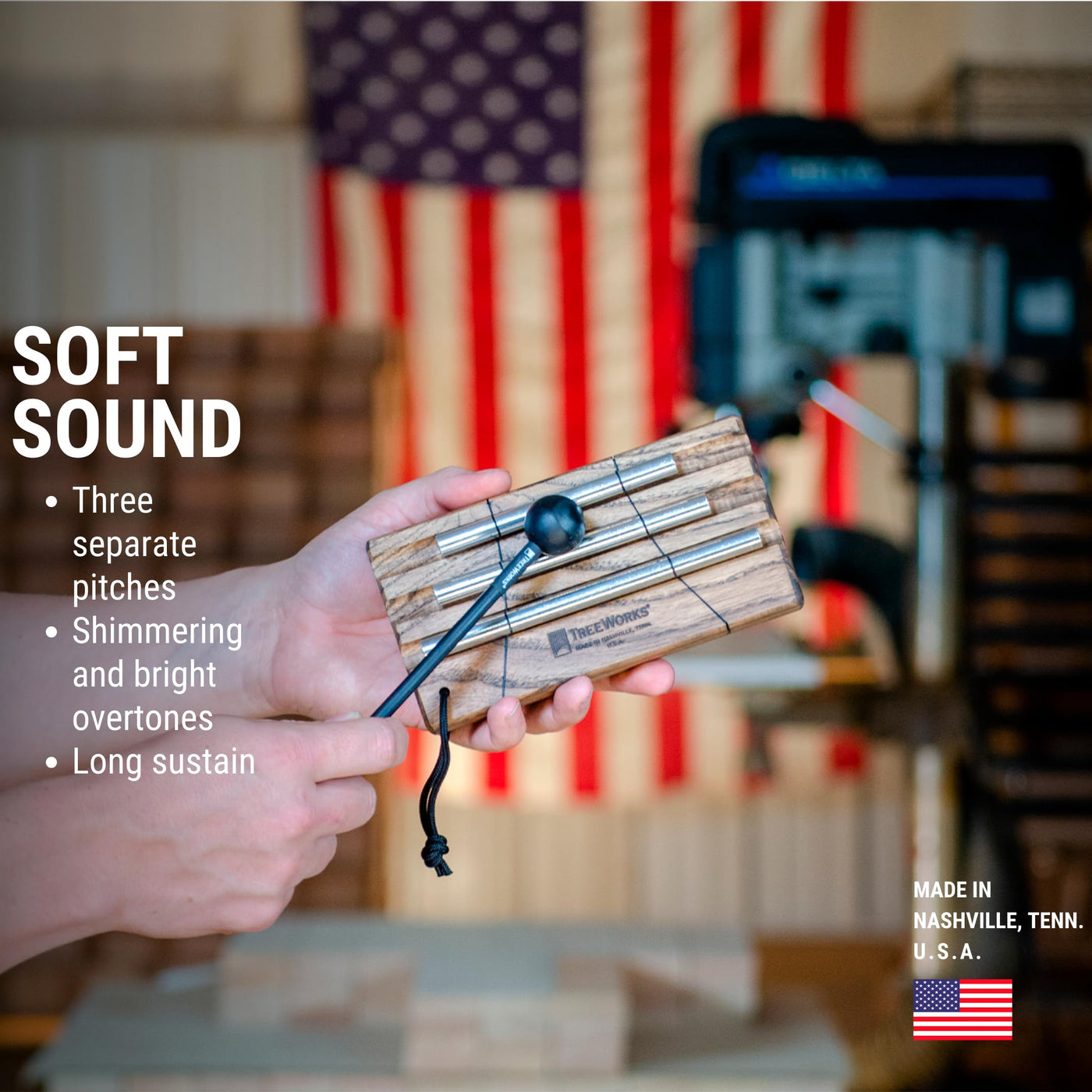 Treeworks Chimes. In The Summer Of 1996, Treeworks Chimes Was Created By Mitch Mcmichen. It Began In His Garage In Nashville, Tennessee. The First Set Of Chimes Was Made With A Hacksaw And A Hand Drill. It Didn'T Look Like Much, But That Was The First Step To Crafting The Perfect Set Of Chimes. When Asked About The Early Days Of Treeworks, Mitch Replies, ''I Wasn'T Trying To Start A Company. I Was Trying To Find A Sound. '' Since Then Treeworks Chimes Has Grown To Become The Most Respected Chimes In The Percussion World -- Used By Top Studio And Touring Drummers And Percussionist As Well As The Top 24 Drum Corps. These Instruments Are Still Handmade In Nashville, Tennessee And Are Unmatched In Craftsmanship And Sound Quality. (It Is Of Note That Mitch Mcmichen Has Earned Gold And Platinum Records For His Recording Work In Nashville. )