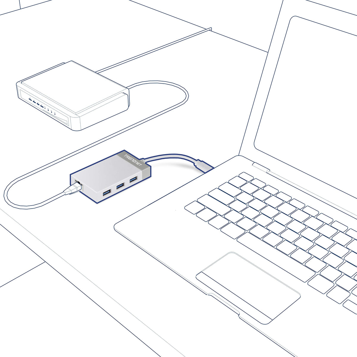 Trendnets Usb 3.0 To Gigabit Adapter + Usb Hub, Model Tu3-Etgh3, Adds A Gigabit Ethernet Port And Three 5Gbps Superspeed Usb 3.0 Ports To A Windows Or Mac Computer. The Usb Adapter And Hub Combo Offers Easy Installation - Simply Plug In Flash Drives, Printers, Scanners And Other Usb 3.0 Devices At Speeds Ten Times Faster Than A Usb 2.0 Connection. The Tu3- Etgh3 Is Also Compatible With Usb 2.0 And 1.1 Devices.