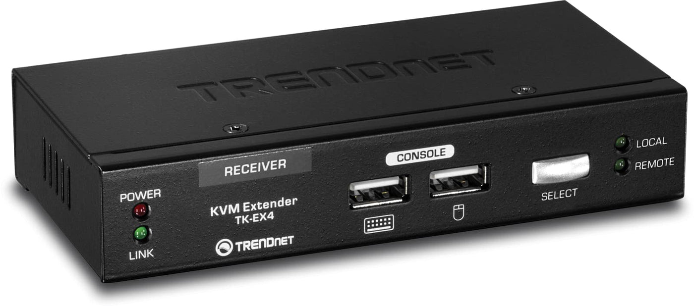 Trendnet'S Kvm Extension Kit, Model Tk-Ex4, Extends Keyboard, Video, And Mouse Controls For Distances Of Up To 100 M (328 Ft.). No Software Installation Required-Simply Connect The Transmitter And Receiver For Full Kvm Controls. Eliminate The Time It Takes To Walk To The Networking Room By Extending Kvm Controls To Your Workstationpackage Contents: Tk-Ex4 Receiver Quick Installation Guide 2 Sets Of 1.2 M (4 Ft.) 3-In-1 Vga Combination Cables 1 Set Of 1.2 M (4 Ft.) Usb Type A To B Cable 2 Power Adapters (5 Vdc, 2A) 2 Usb To Ps2 Adapters