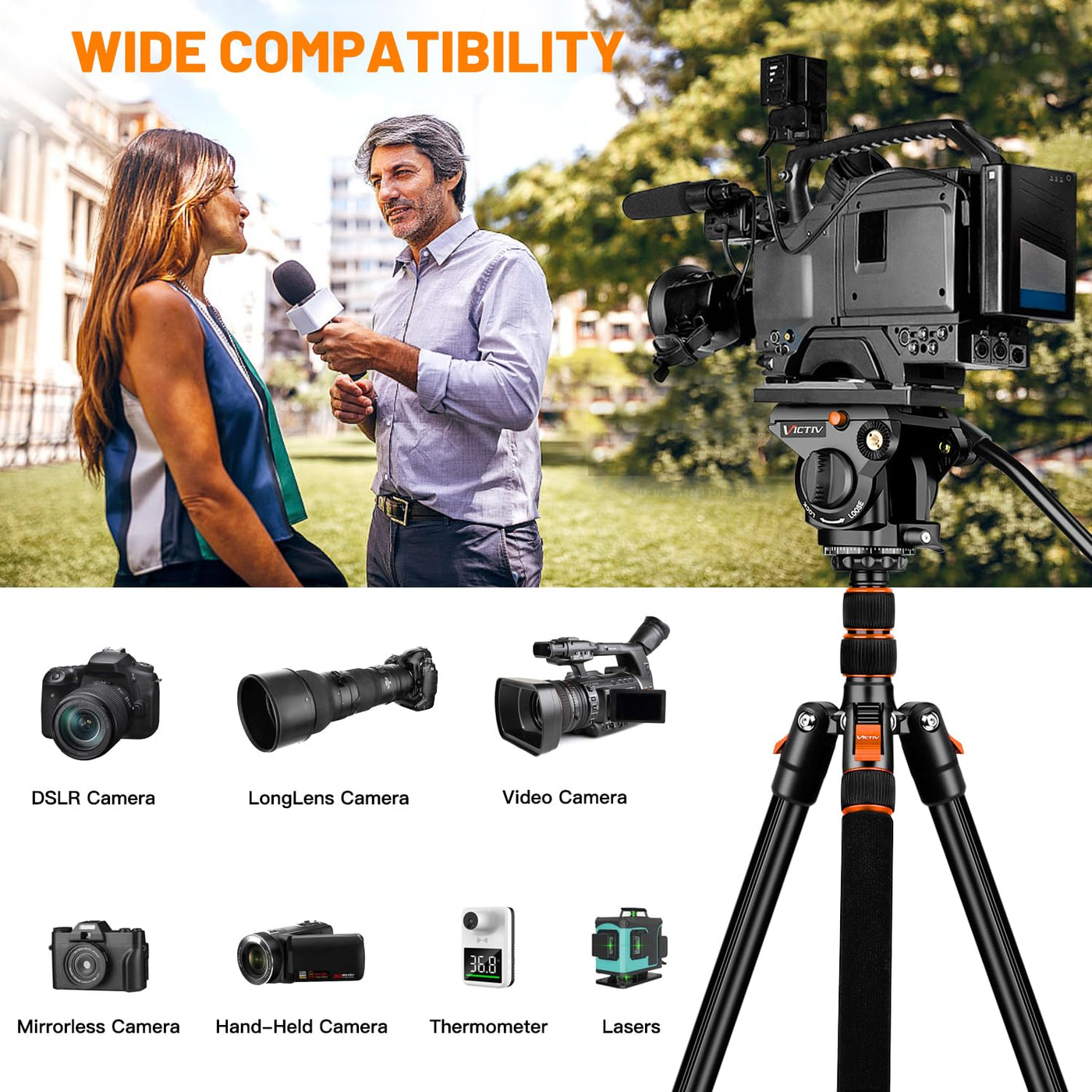 Tripod For Camera Fluid Head, Heavy Duty Camera Tripod Stand 72', Professional Video Tripod For Camera, Compatible With Canon Nikon Dslr Camcorders Binoculars Spotting Scope Telescope
