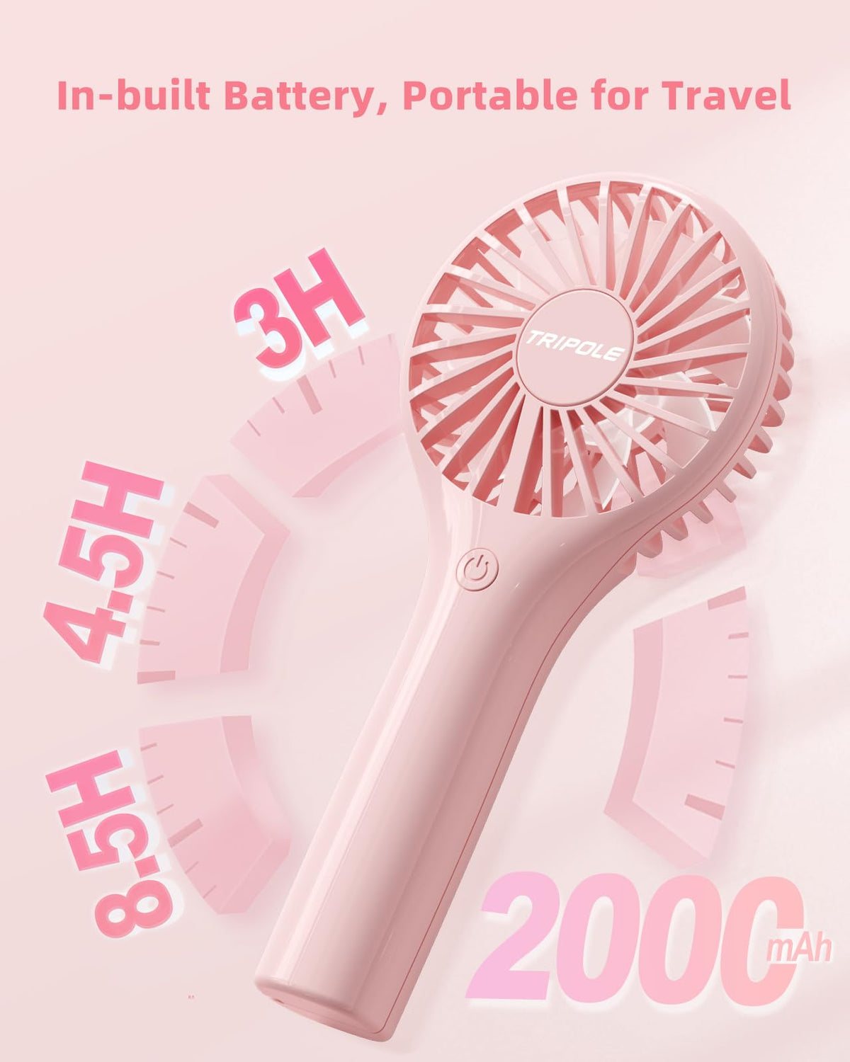 Tripole Portable Handheld Fan Mini Personal Fan With 3 Speeds, Powerful Little Battery Hand Held Fan For Travel Trip Outdoor Con