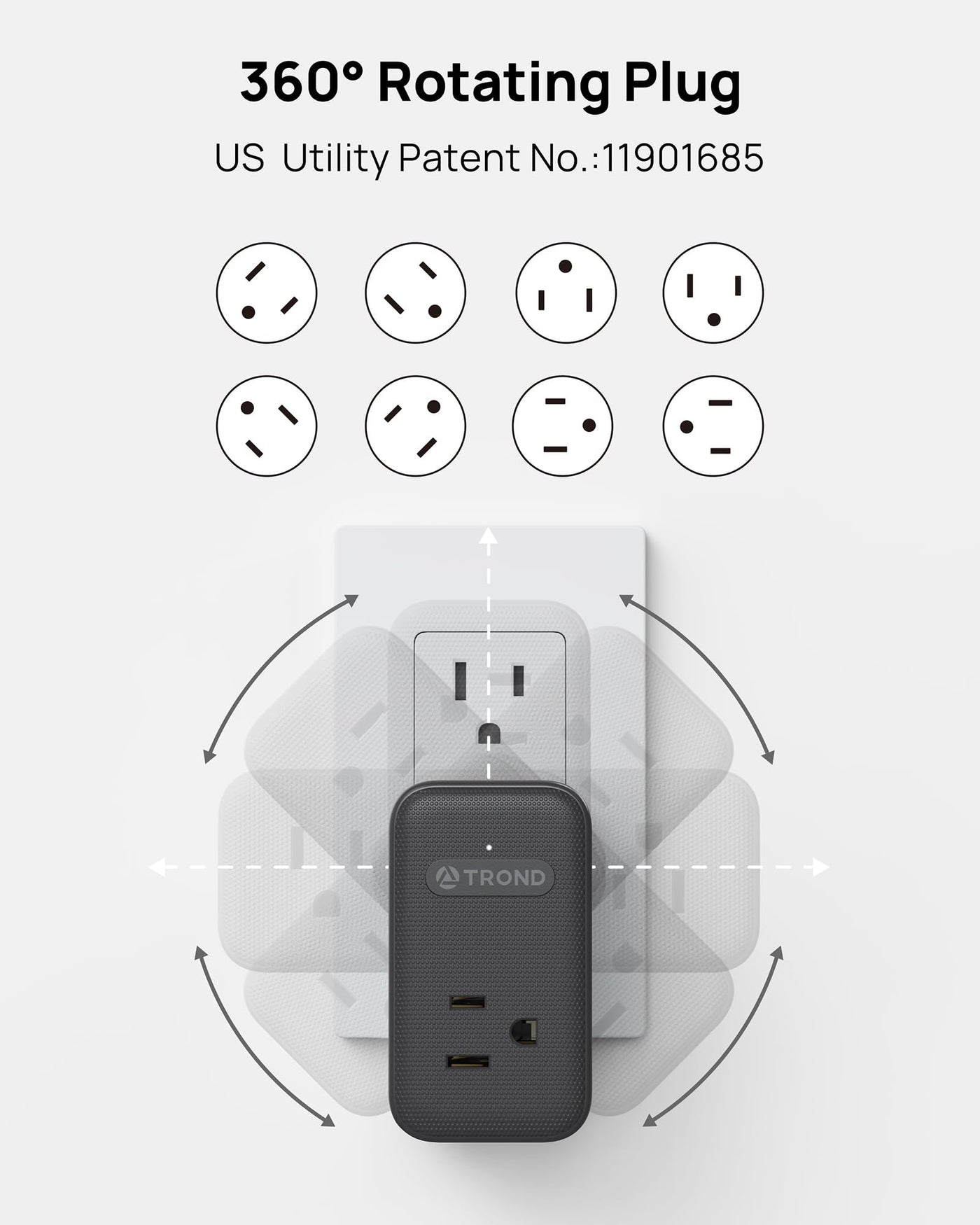 Q: How does the 360° rotating plug feature work?A: The 360° rotating plug allows you to adjust the position of the outlet extender to fit into tight spaces behind furniture or in awkwardly placed sockets. This feature provides enhanced flexibility and convenience for various charging setups.
