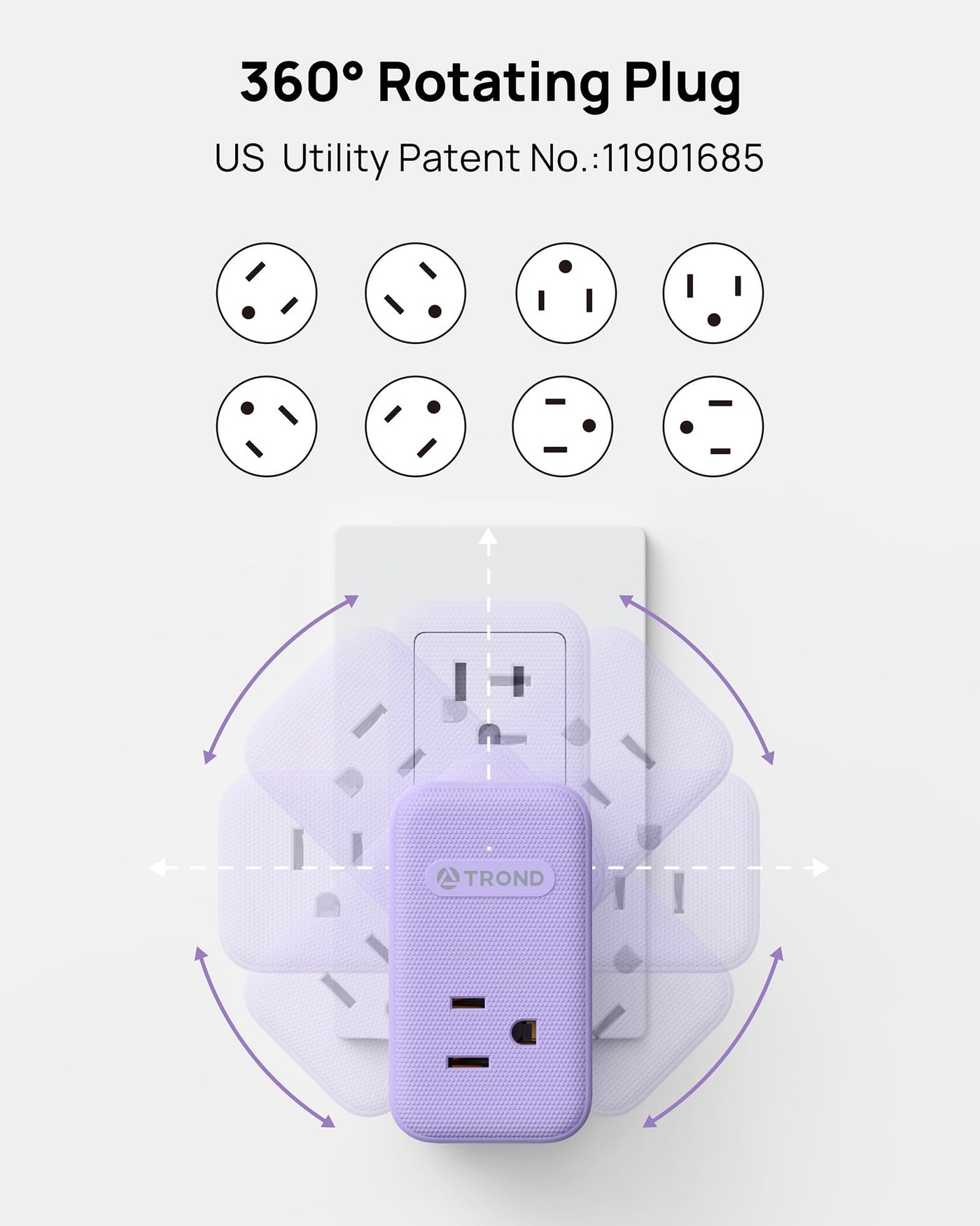 Q: What makes the TROND outlet ideal for travel?A: The compact design of the TROND outlet (3.07x1.73x1.57 inches) and its 360° rotating plug make it perfect for travel, allowing it to fit easily behind furniture and in tight spaces.