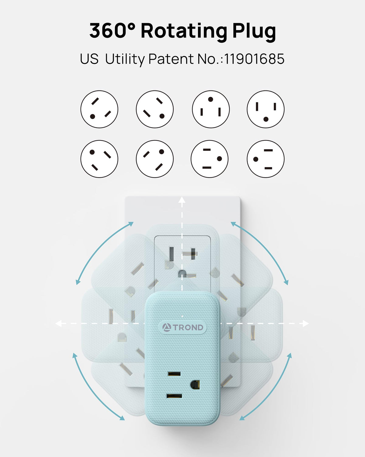 Trond Outlet Extender With Usb, Multi Plug Wall Outlet With 3 Ac Chargers, 360 Rotating Plug Adapter With Pd 20W Usb C Port, Cut