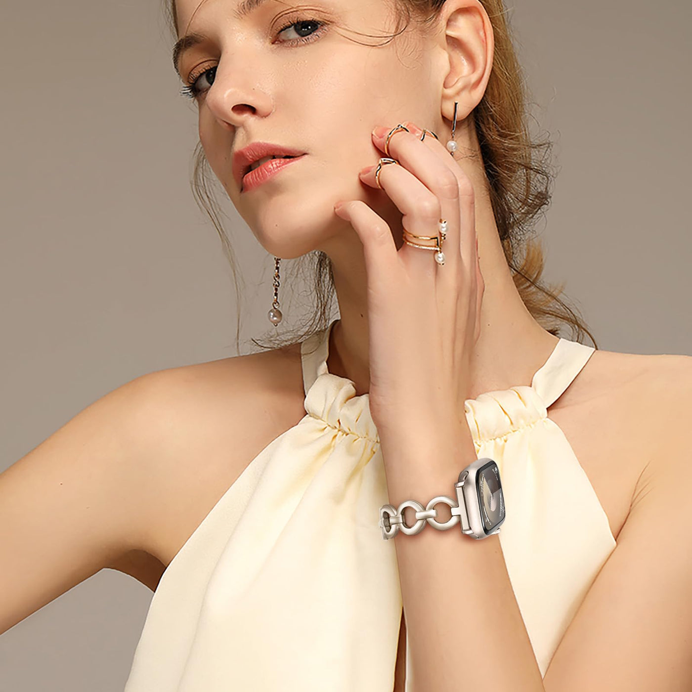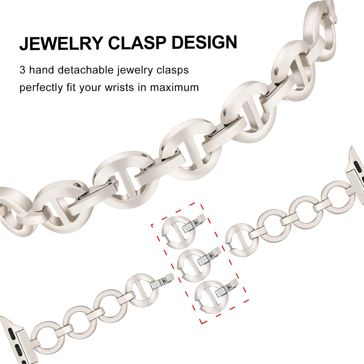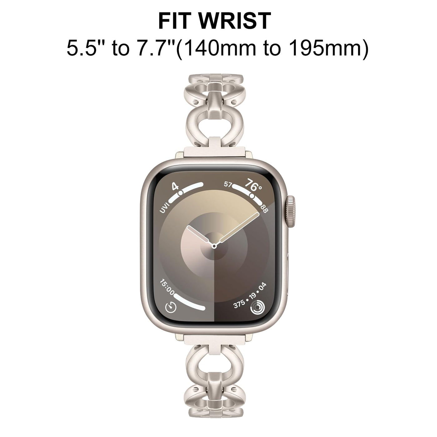 Application: Specially Designed For Apple Watch Series 8 7 45Mm Se (2Nd Gen) 44Mm Starlight, And Also Suitable For Apple Watch Ultra 49Mm Se Series 6 5 4 3 2 1 44Mm 42Mm Superb Material & Craftmanship: Made Of Premium Stainless Steel With Fine Polish And Electroplating, Unique Starlight Color, Beautiful, Skin-Friendly And Comfortable To Wear Jewelry Ring Design: Concise & Stylish, Dressing Up Your Watch To Be More Feminine And Exquisite Customed Adapters, Just Install And Detach Freely By Hand, No Tool Needed Easy Resizing: Fit Wrists 55 To 77(140Mm To 195Mm), Covering The Majority Of Women Wrists 3 Hand Detachable Jewelry Clasps, Remove Easily To Adjust Band Length, Perfectly Fit Your Wrists In Maximum Package Includes: 1 X Watchband, 1 X Trumirr Bag