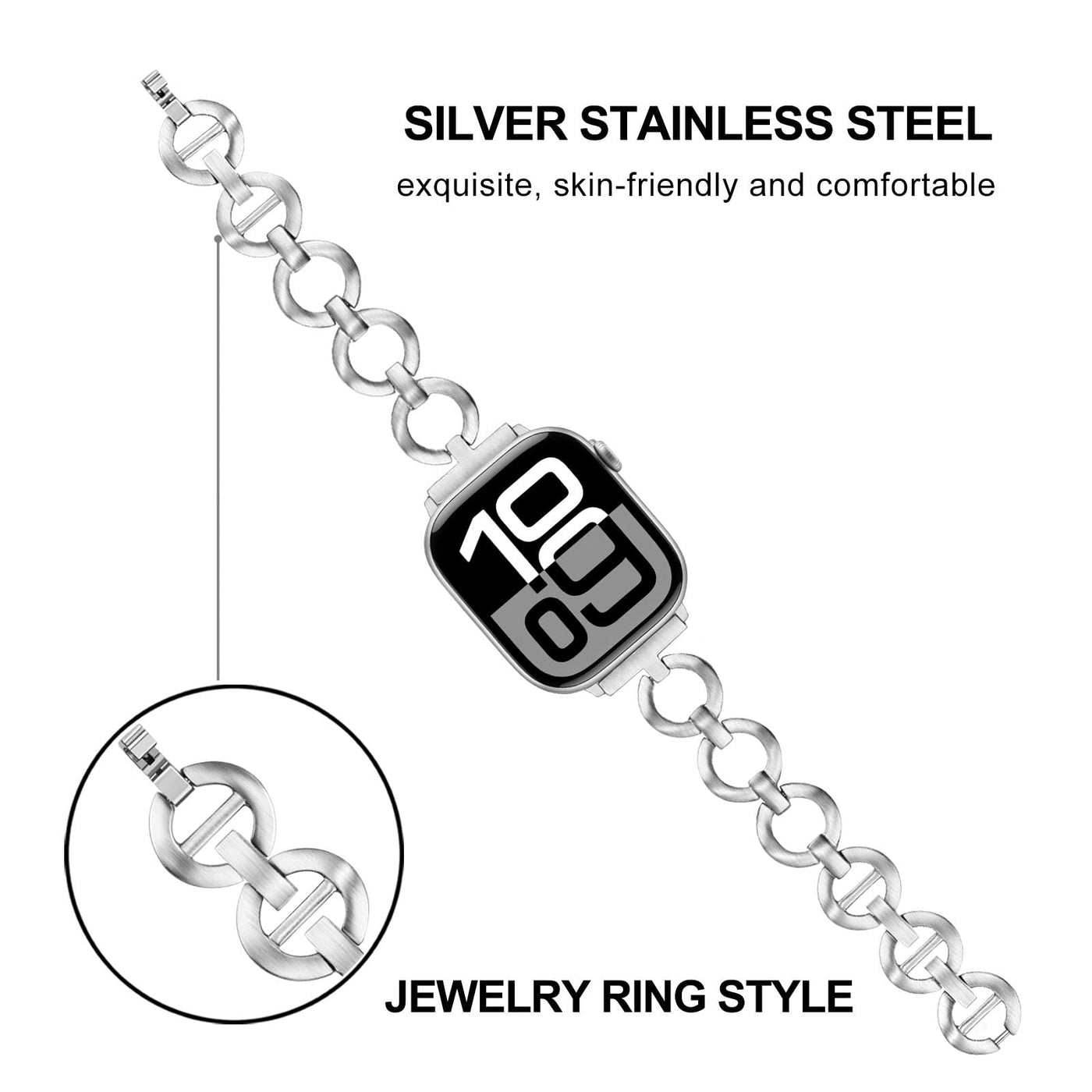 Trumirr Band For Apple Watch Series 8 7 45Mm Silver Women, Stainless Steel Watchband Jewelry Strap For Iwatch Apple Watch Ultra Se (2Nd Gen) Series 8 7 6 5 4 3 2 1 49Mm 45Mm 44Mm 42Mm Package Includes: 1 X Watch Band With Custom Adapters 1 X Instruction