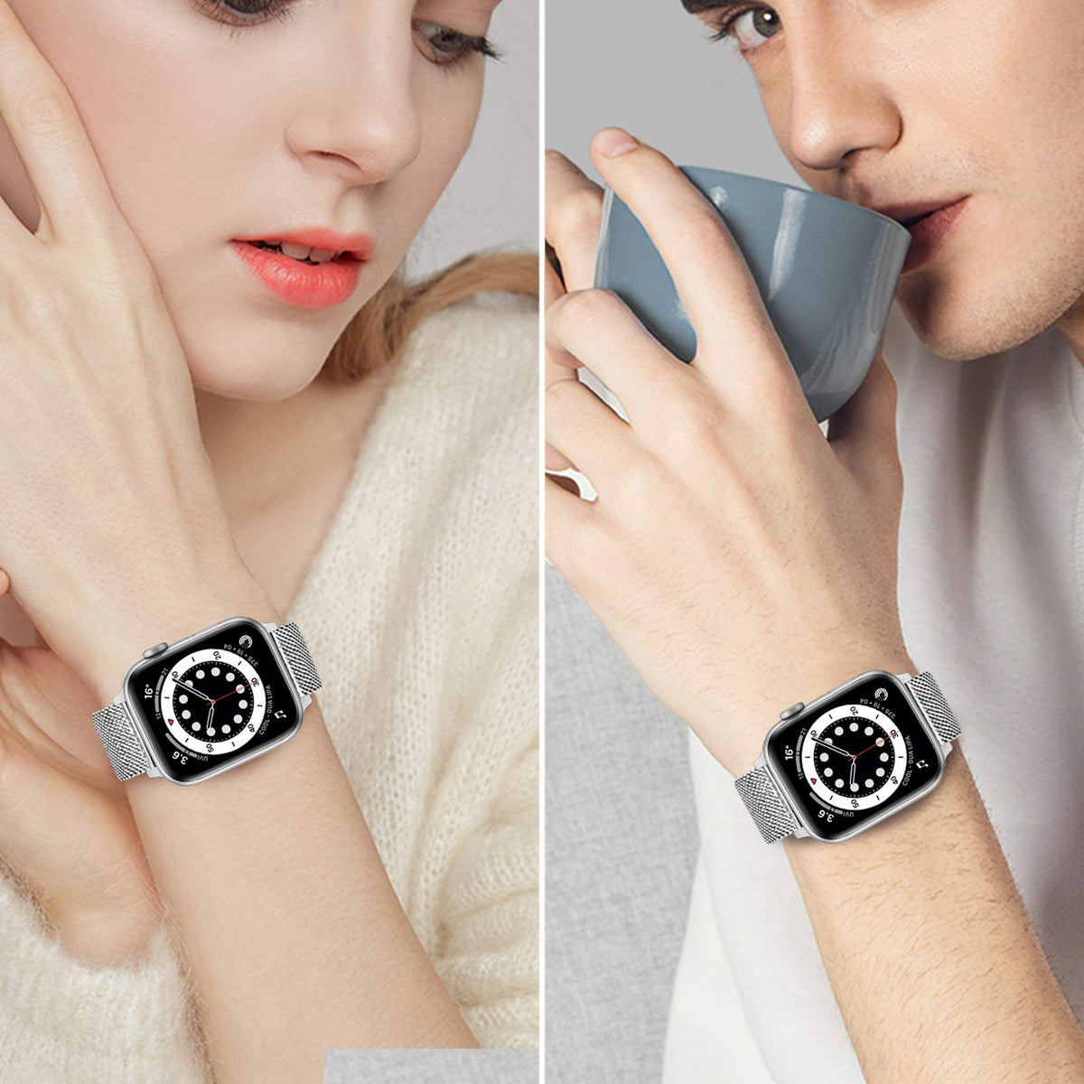 Trumirr Silver Band For Apple Watch 38Mm 40Mm 41Mm Women Men, Mesh Woven Stainless Steel Watchband Replacement Strap Bracelet For Iwatch Apple Watch Se Series 8 7 6 5 4 3 2 1 38Mm 40Mm 41Mm Package Includes: 1 X Watch Band 1 X Watch Needle (To Adjust Strap Length For The Initial Use)