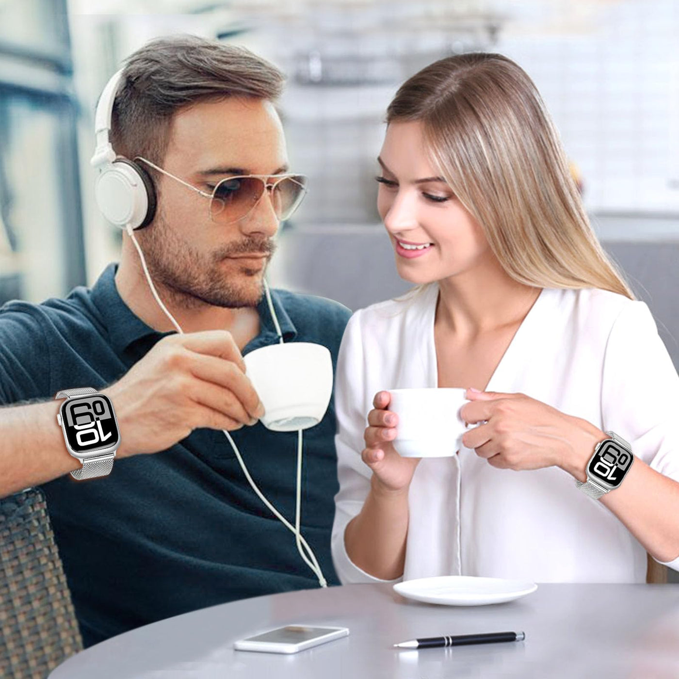 Q: What material is the TRUMiRR Silver Band made from?A: The band is made of premium mesh woven stainless steel, which is polished for a luxurious silver finish, ensuring it is smooth, breathable, and comfortable to wear.