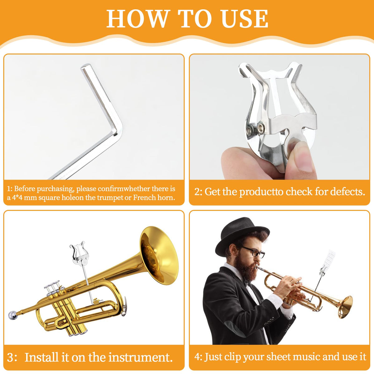 Marching Music Sheet Clip For Trumpet Or French Horn Is Made Of Selected Material, Its Rustproof And Sturdy, Very Convenient To Use When Giving An Instrument Performance. Specifications: Type: For Trumpet / For Horn (Optional) Main Color: Silver Material: Metal Plating Material Item Size: Approx.Length Is 182Mm (7.2 ) Package Weight: Approx. 45G / 1.59Oz Package List: 2 * Music Sheet Clamp Note: Trumpet Lyre Included Only, Music Sheet And Instruments Are Not Included.