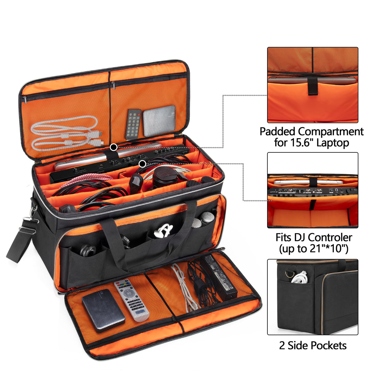 Trunab Large Travel Dj Cable File Bag With Inner Detachable Divider And Padded Compartment For 156A Laptop, Cable Organizer Bag For Cords, Sound Equipment, Dj Gear, Musician Accessories