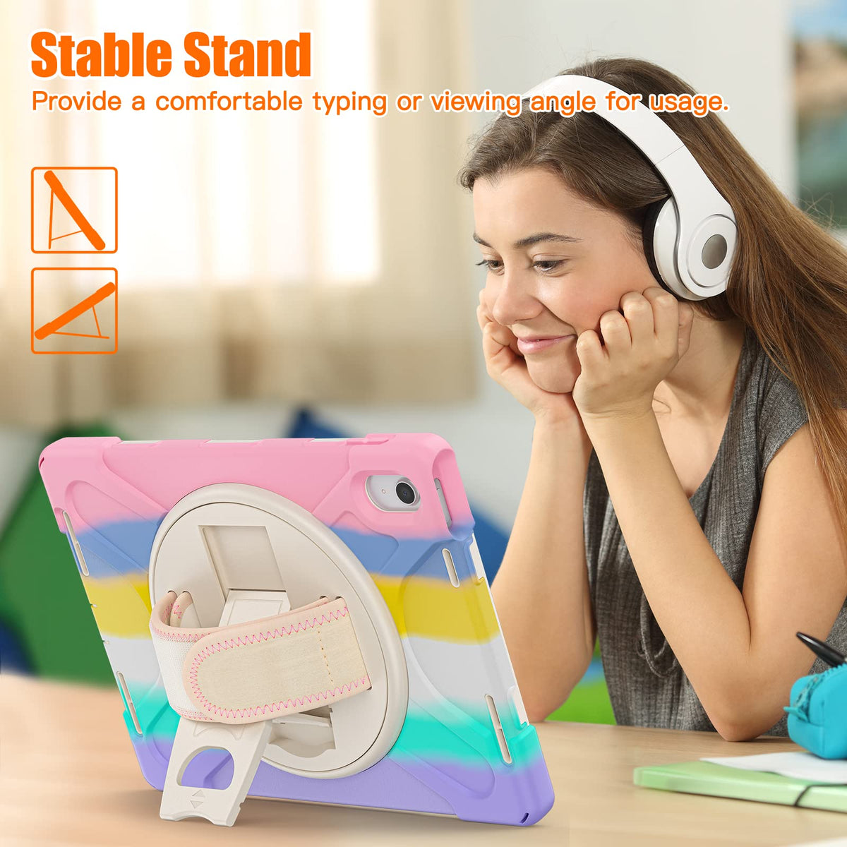 Q: Can this case be used by children?A: Yes, the case is designed with kids in mind, offering sturdy protection and an adjustable hand strap for easy handling. It's perfect for children, students, and anyone needing a reliable case for their iPad.