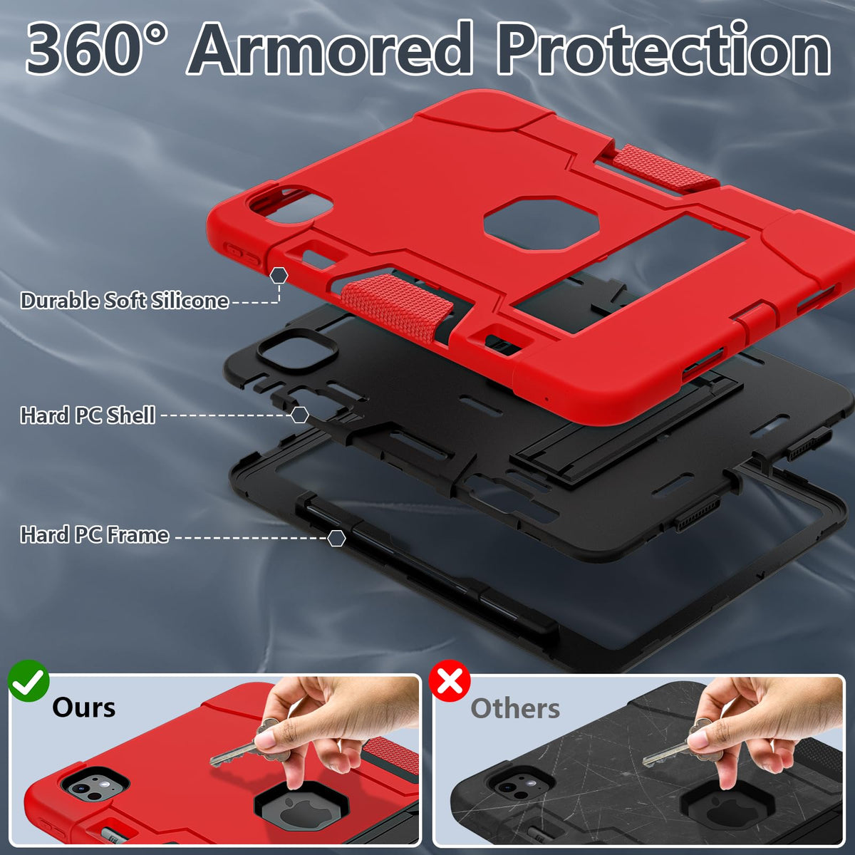 Case For Ipad Pro 11 Inch M4 2024 Model With Stand Pencil Holder Defender Slicone Protection Drop Proof Kidsproof