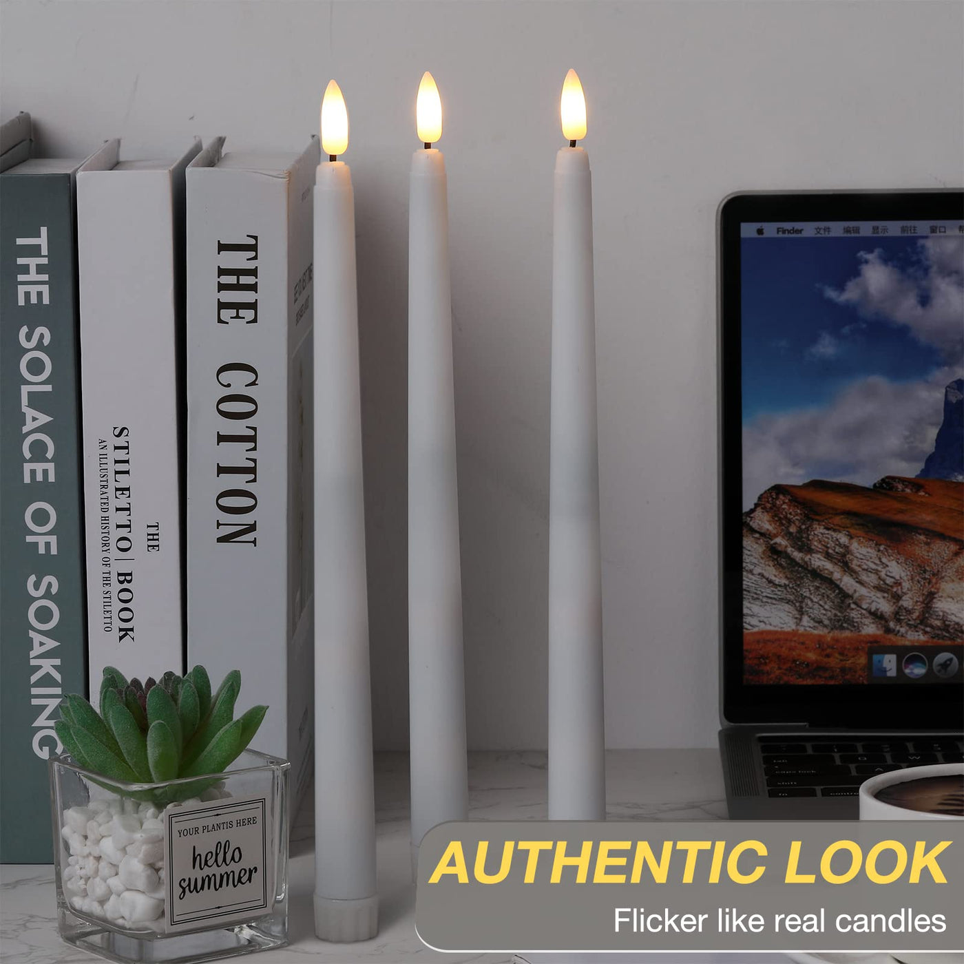 Battery Powered Candlesled Taper Plastic Candles Are Powered By 2 Aaa Batteries (Not Included), So You Don'T Have To Worry About The Influence Of Flame And Dust Anymore. These Battery Tapered Candles Look Like Real Candles, But They Won'T Drip Wax And Have No Smell.Candle Light Mode:Battery Operated Candlesticks Have Flickering Or Non Flickering Candlelight. Candle Mode Light Flashing Is More Like A Real Candle, And Non Flashing Mode Provides Stable Light.Widely Usage:Christmas Battery Operated Candles Can Widely Be Applied At Home, Hotel, Church, Wedding, Party, Holiday, Thanksgiving, Christmas And Daily Desktop, Window, Dining Table And Other Decorations.Material: Plasticcolor: Whitediameter: Approx. 0.75 Inchheight: Approx. 11 Incheswick Type: Realistic 3D Wicktimer: 2/4/6/8 Hoursremote: 10 Key Remotelight: Flicker Like Flame Or No Flicker Brightness: Increase Or Decrease Brightnessbattery: 2 Aaa Batteries (Not Included)Package Information:20 X White Led Taper Candles2 X Remote Controls With 10 Keysnote:Manual Measurement, Please Allow Slight Errors On Size.The Color May Exist A Slight Difference Due To Different Screen Displays.