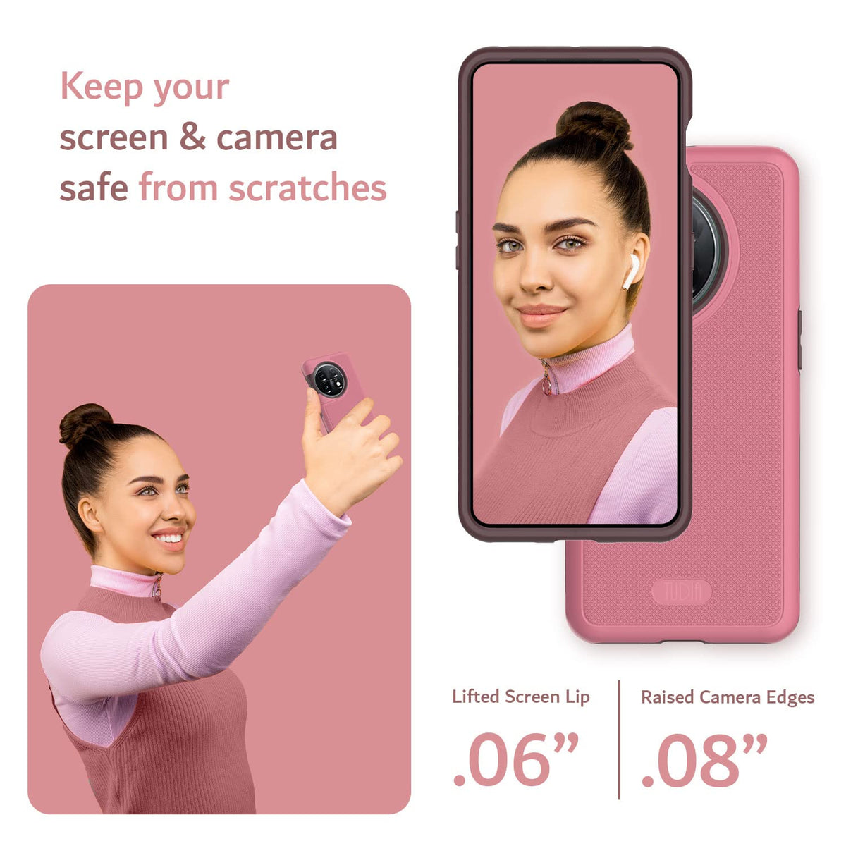 Q: Does the case provide a good grip?A: Yes, the TUDIA DualShield Grip case has a non-slip textured design on both sides and the back, offering additional grip for a secure hold while using your phone.