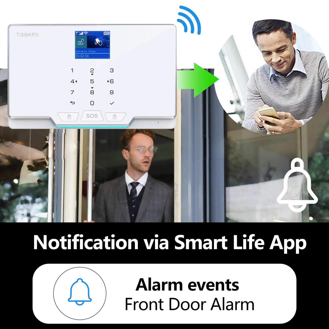 Tugard 1.8'' Tft Colorful Screen Smart Home Security System 12 Pieces Kits,Burglar Alarm Security System With Phone App Alert,Support Sms Push,Monitor Sensor,Remote Controls, Window Door Sensor,Work With Alexa And Google Assistant For Home Apartment Villa,Garage, Door Alarm