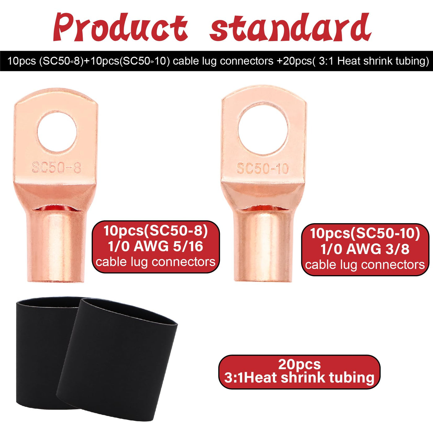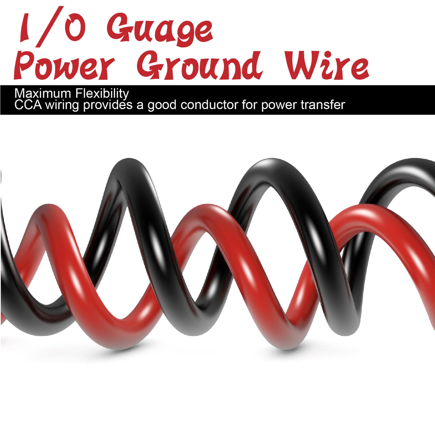 -Package Includes: 2Pcs 1/0 Gauge 20Feet(6.1M) Cca Power Ground Cable(Red&Black) 10Pcs Sc50-10 Copper Cable Lugs+10Pcs Sc50-8 Copper Cable Lugs 20Pcs 3:1 Heat Shrink Tubing -Specification: Cca Wiring Provides A Good Conductor For Power Transfer. This Is The Most Economical Option When Choosing Power Or Ground Wire. Systems That Require More Power Should Consider Ofc Wiring. Color Coded, Color Jacket Allows For Easy Polarity Identification. Widely Used In Lighting, Household Appliances, Electric And Automobile Wiring, Science Fair Projects, Etc.