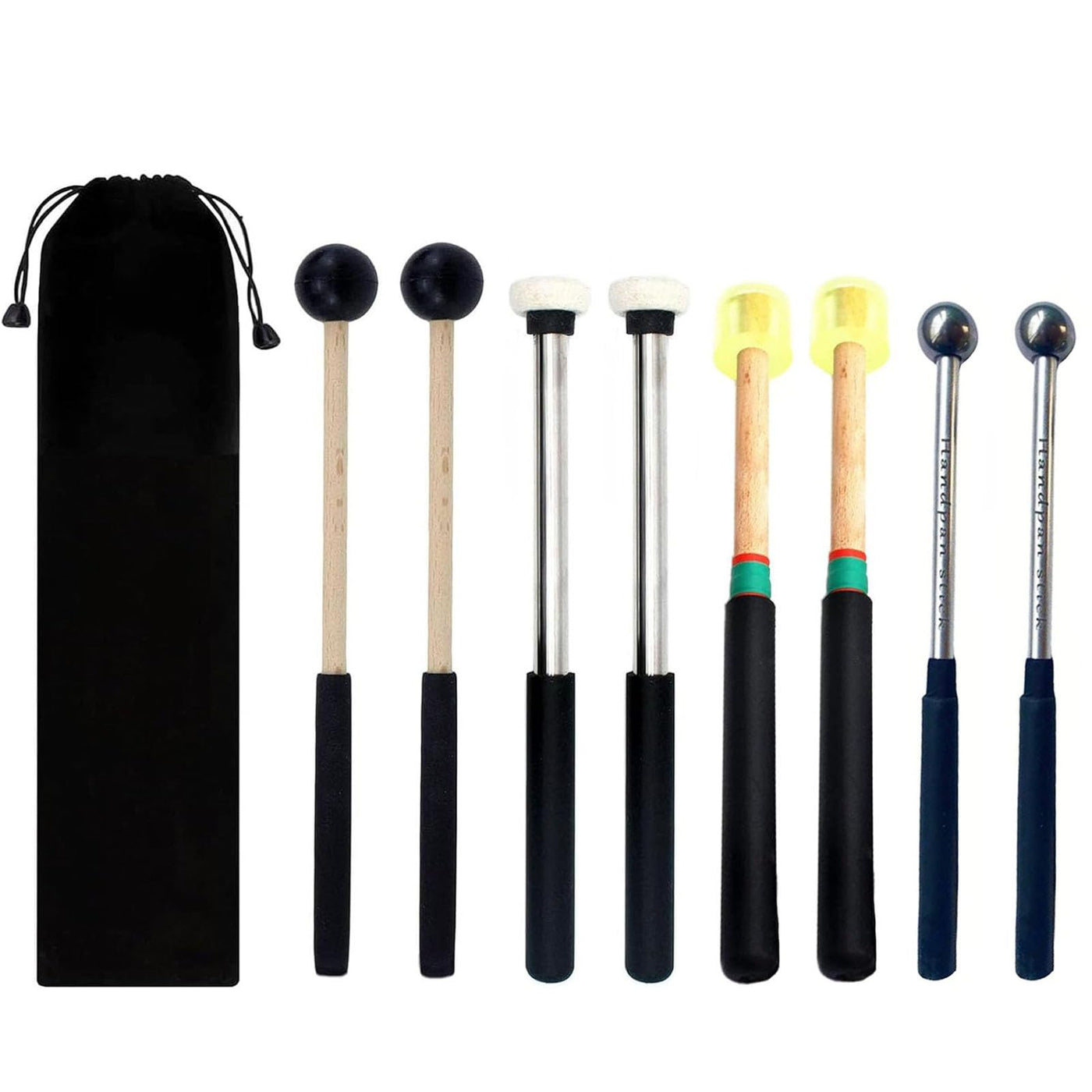 Tuoren 4 Pair Steel Tongue Drum Mallets With Storage Bag, 2 Pair Rubber Head Wood Glockenspiel Sticks, 1 Pair Steel Head And 1 P