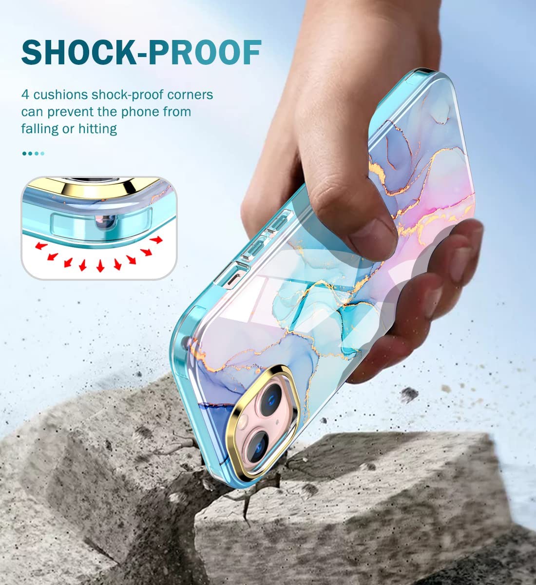 Q: Is the Turquoise Cute Marble Case compatible with both iPhone 13 and iPhone 14?A: Yes, this case is designed to fit both iPhone 13 and iPhone 14 models, ensuring a perfect and secure fit.