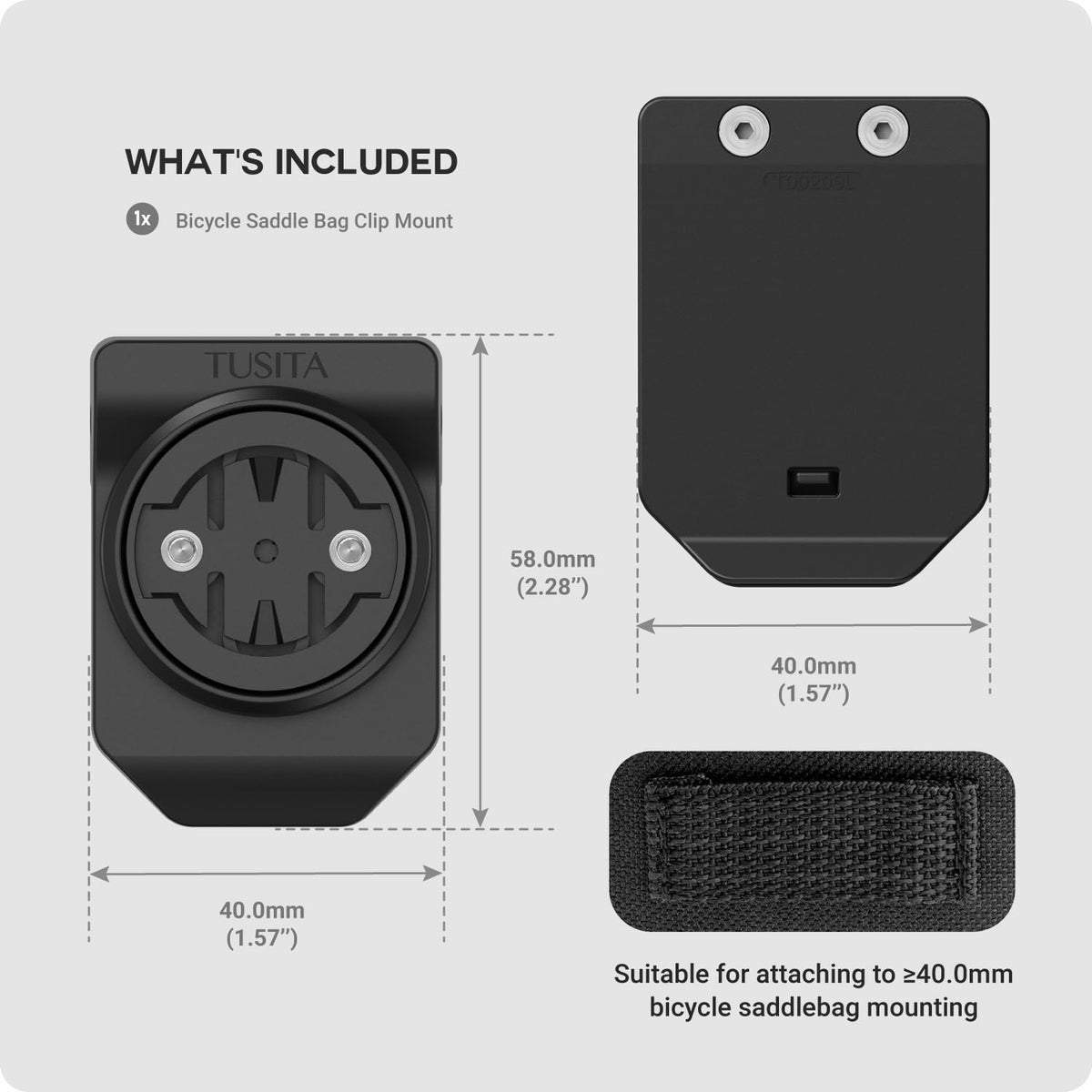 Overview Tusita Cycling'S Varia Saddle Bag Clip Mount Ensures A Secure Attachment For Your Garmin Varia Rtl510, Rtl515, Or Any Rear-Facing Device With A Garmin Quarter-Turn System. We Prioritize Rider Safety And This Mount Is A Part Of Our Esteemed Varia Mount Collection. Tech Specs Material:High Strength Composite What'S In The Box 1 X Tusita Cycling'S Varia Saddle Bag Clip Mount