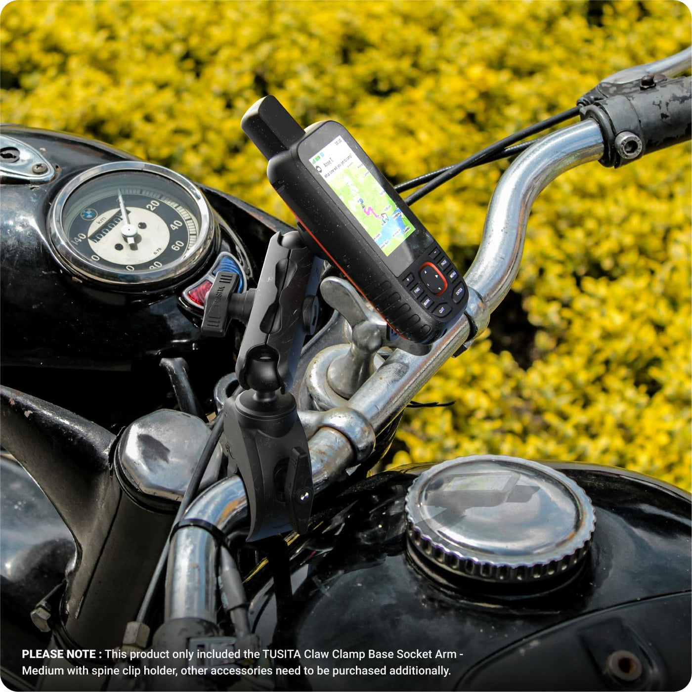 Tusita Motorcycle Atv/Utv Mount Compatible With Garmin Handheld Gps Claw Clamp Base, Medium Arm