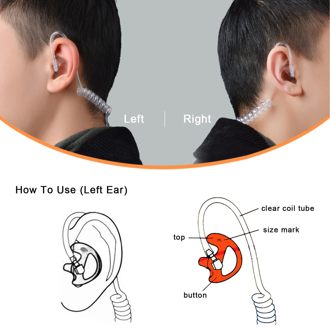 Twayrdio Large Size Earmold Earbud Ear Mold For Surveillance Earpiece Walkie Talkie Two Way Radio Headset Acoustic Coil Tube Aud