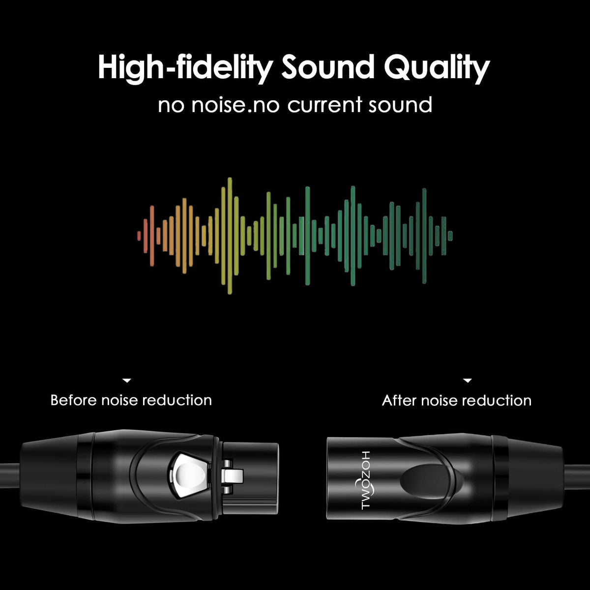 Q: Can the Twozoh XLR cable help eliminate noise in audio recordings?A: Yes, the Twozoh XLR cable is designed with multiple metal-wound shields that effectively isolate electromagnetic interference, ensuring minimal noise during audio recordings. This feature helps to maintain the integrity of the original sound quality, making it an excellent choice for professional audio applications.
