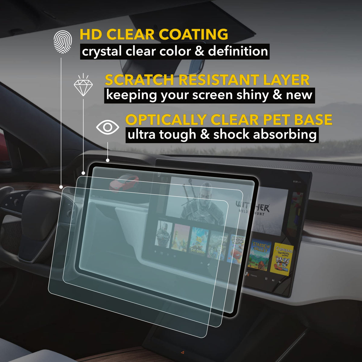 Twraps Screen Protectors For Tesla Model S & Model X 2023 2024 2025, 17' Front & 9.4' Back/Rear, Clear Hd | 9H Pet Ultra Tough Shockproof Screen Saver Cover Display Protective Foil Guard