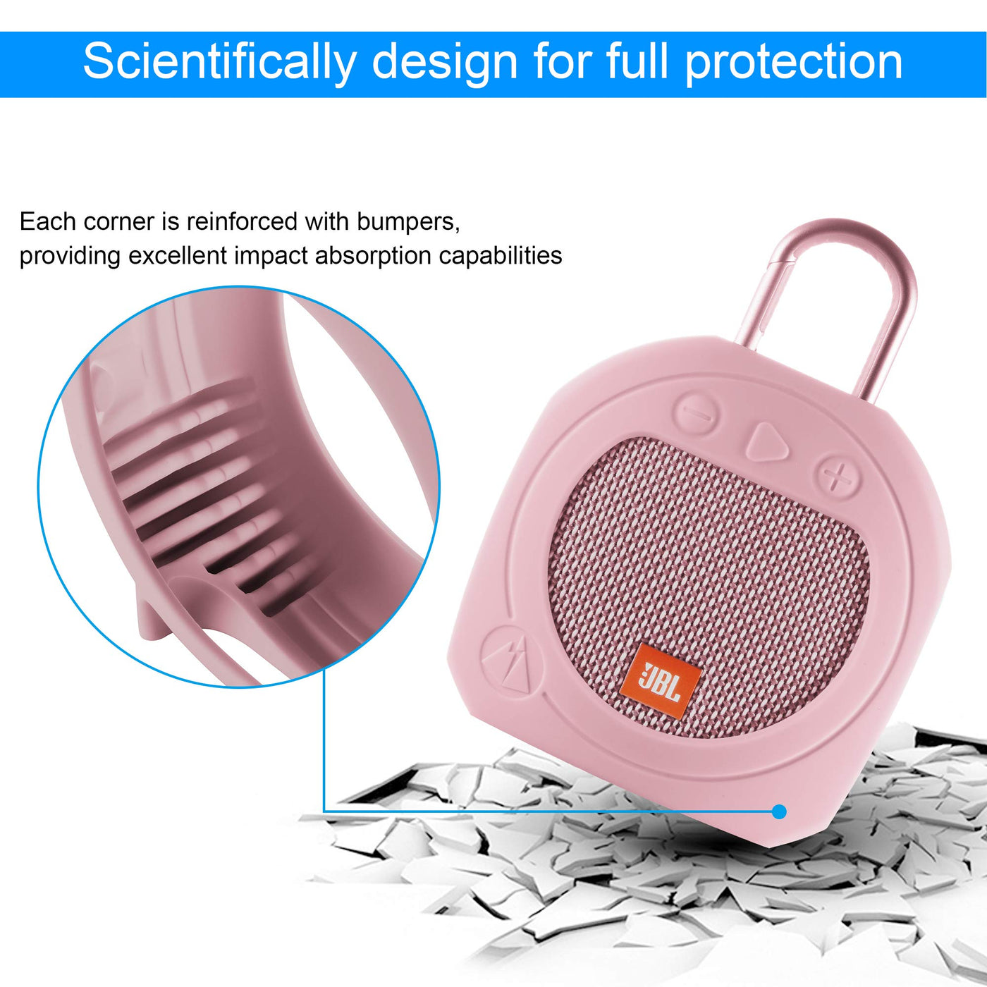 Compatible With:Close-Fitting Cute Designed For Jbl Clip 3 Portable Waterproof Wireless Bluetooth Speaker, Add Extra Protection For Your New Jbl Speaker.It Can Stand Up Right Easily When You Using At Home To Listen To Music Or Hang It Up In The Shower; The Silicone Skin Has A Thicker Layer Of Protection.Material:Top Grade Silicone Environment Friendly Materialfeature:Scientifically Designed With Reinforced Bumper Corners For Maximum Shock Absorption, Provide Lateral Impact Protection, Reducing Any Shock Occurring From An Accidental Drop To Keep Your Speaker Safe. Each Corner Is Reinforced With Bumpers, Providing Excellent Impact Absorption Capabilities.Customized Press Button Icons For Volume Up And Down, Bluetooth, Power On/Off .Stand Up Right Easily:Use This Protective Case To Add A Flat Bottom To The Jbl Clip 3, The Jbl Clip 3 Is A Great Speaker But It Has A Rounded Bottom And Sounds Better Standing Up. This Case Does Add Some Weight To Carry Around, But The Extra Mass Does Make For Better Low Tones.Outer Dimensions: 3.93 L X 3.93 W X 1.38 Hweight:3Ozpackage Included: 1* Silicone Case For Jbl Clip 3