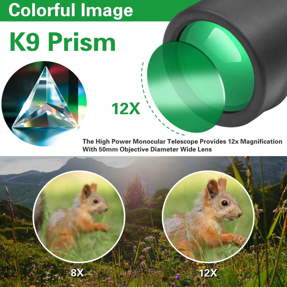 Tydeux 12X50 Handheld Monocular Telescope Bak 9 Prism Monoscope For Bird Watching Hunting Camping Traveling Stargazing Wildlife