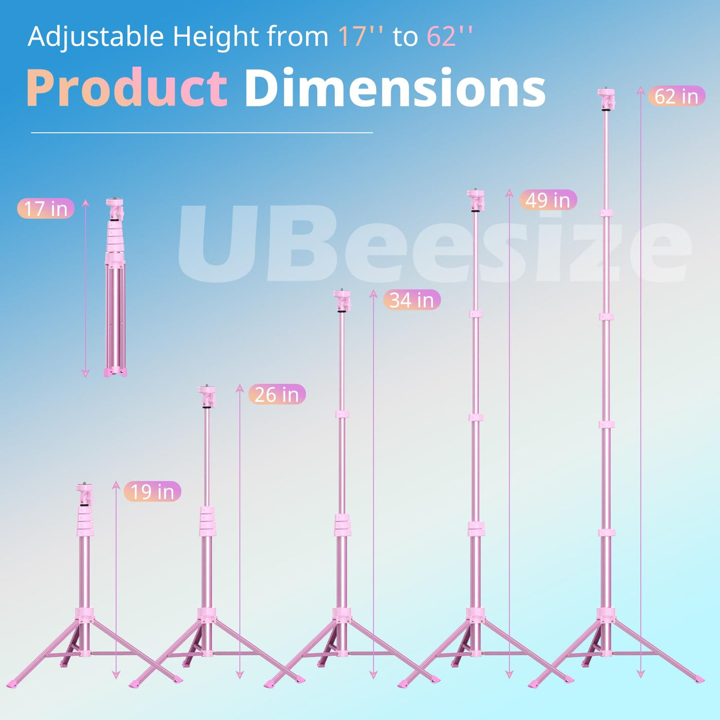 Q: Can I use this tripod for video recording?A: Yes, the UBeesize tripod is designed not only for selfies but also for video recording. Its excellent stability and adjustable height (extending from 17 inches to 62 inches) make it ideal for vlogging, live streaming, and capturing high-quality videos from various angles.