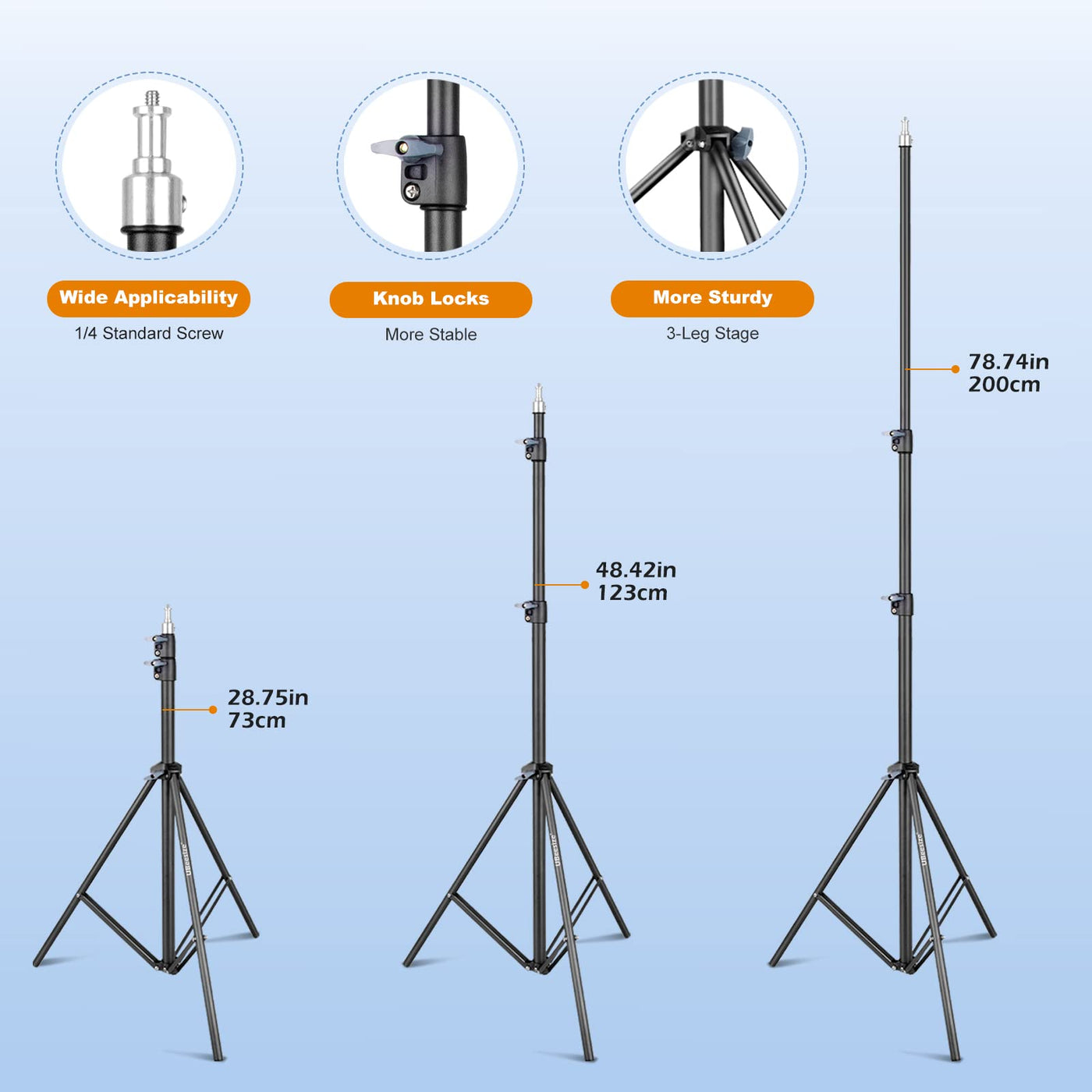 Q: Is the tripod adjustable and stable for different heights?A: Yes, the softbox lighting kit comes with adjustable tripods that feature independent locking knobs, ensuring stability and security even at various heights during use.
