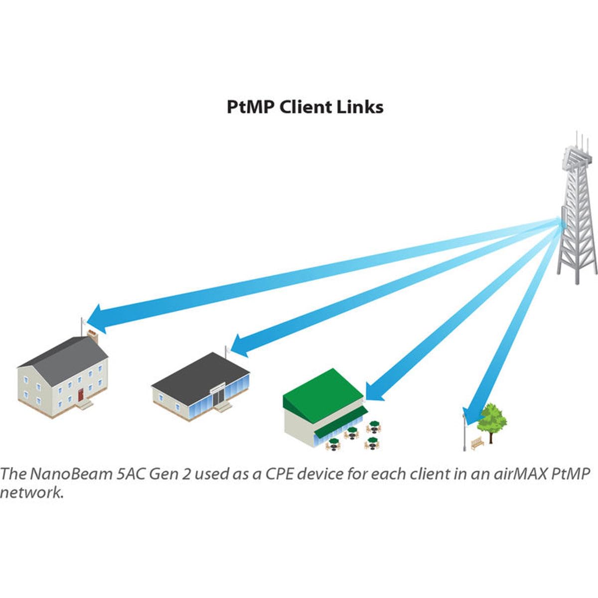Q: What is the range of the Ubiquiti NanoBeam ac Gen2?A: The Ubiquiti NanoBeam ac Gen2 is designed to provide a long-range wireless connection, typically reaching distances of up to 15 km (9.3 miles) under optimal conditions.