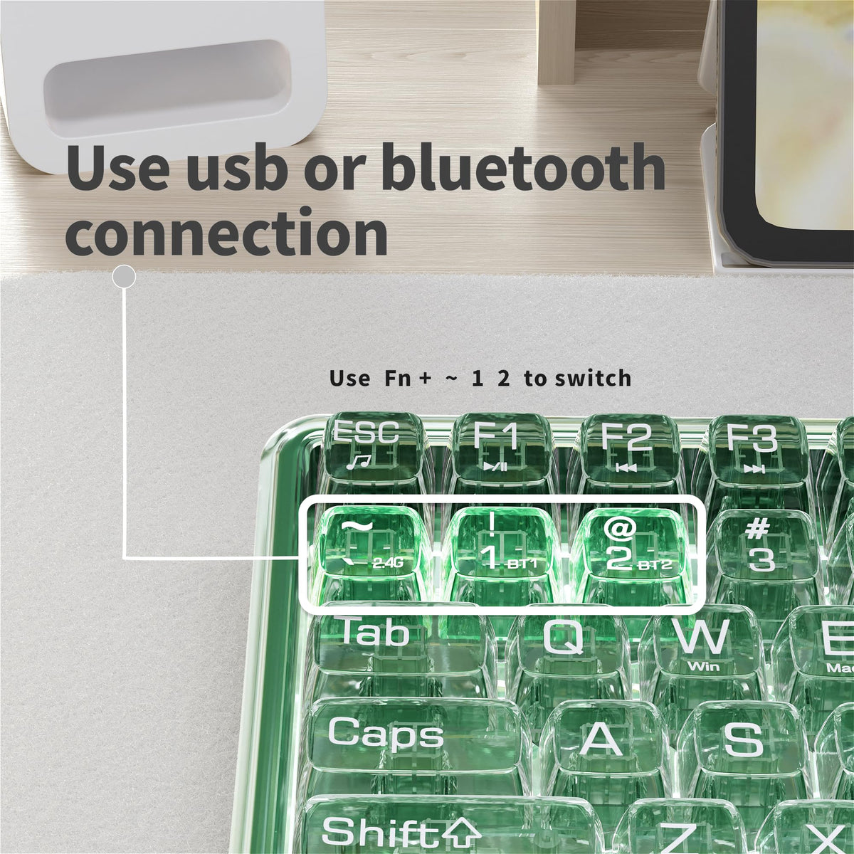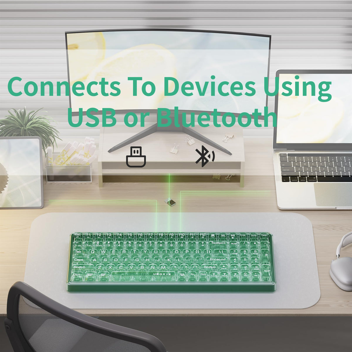 Ubotie Bluetooth Wireless Transparent Keyboard, Dual Mode Bt1 Bt2 Usb Receiver Connection 100Keys Bt Keyboard With Power On Off