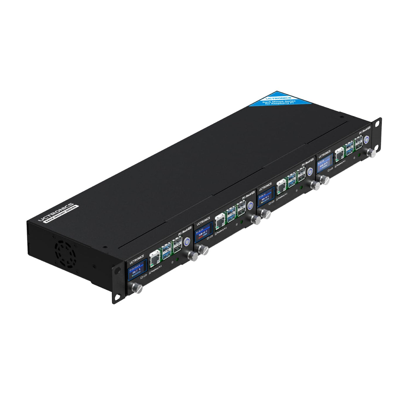 UCTRONICS Pi 5 Rack Pro, Raspberry Pi 5 NVMe Rack with 4 M.2 NVMe SSD Base, PCIe to NVMe, Safe Shutdown, 0.96 Color LCD