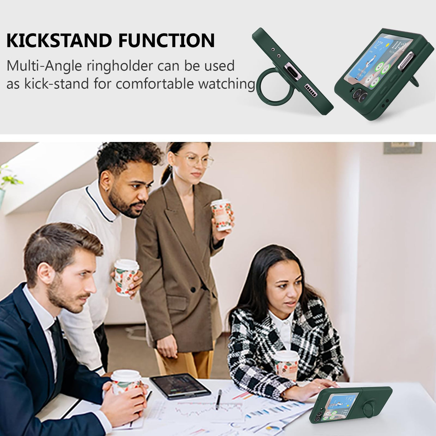 Ueebai Case For Samsung Galaxy Z Flip 5 5G, Slim Liquid Silicone Phone Case With 360 Rotatable Ring Holder Kickstand Fashion Mag