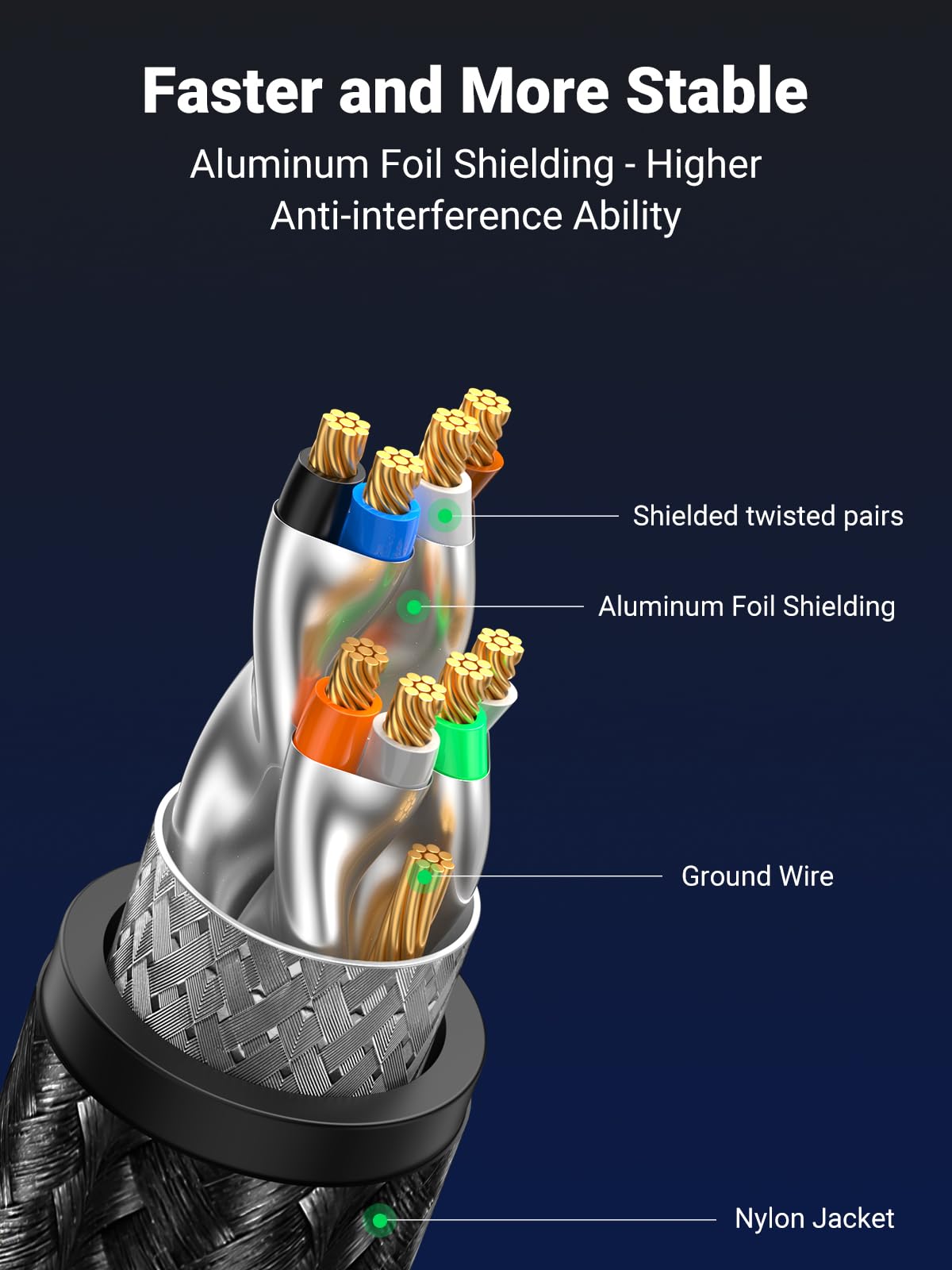 Ugreen Cat 8 Ethernet Cable 10Ft, High Speed Braided 40Gbps 2000Mhz Network Cord Cat8 Rj45 Shielded Indoor Heavy Duty Lan Cables