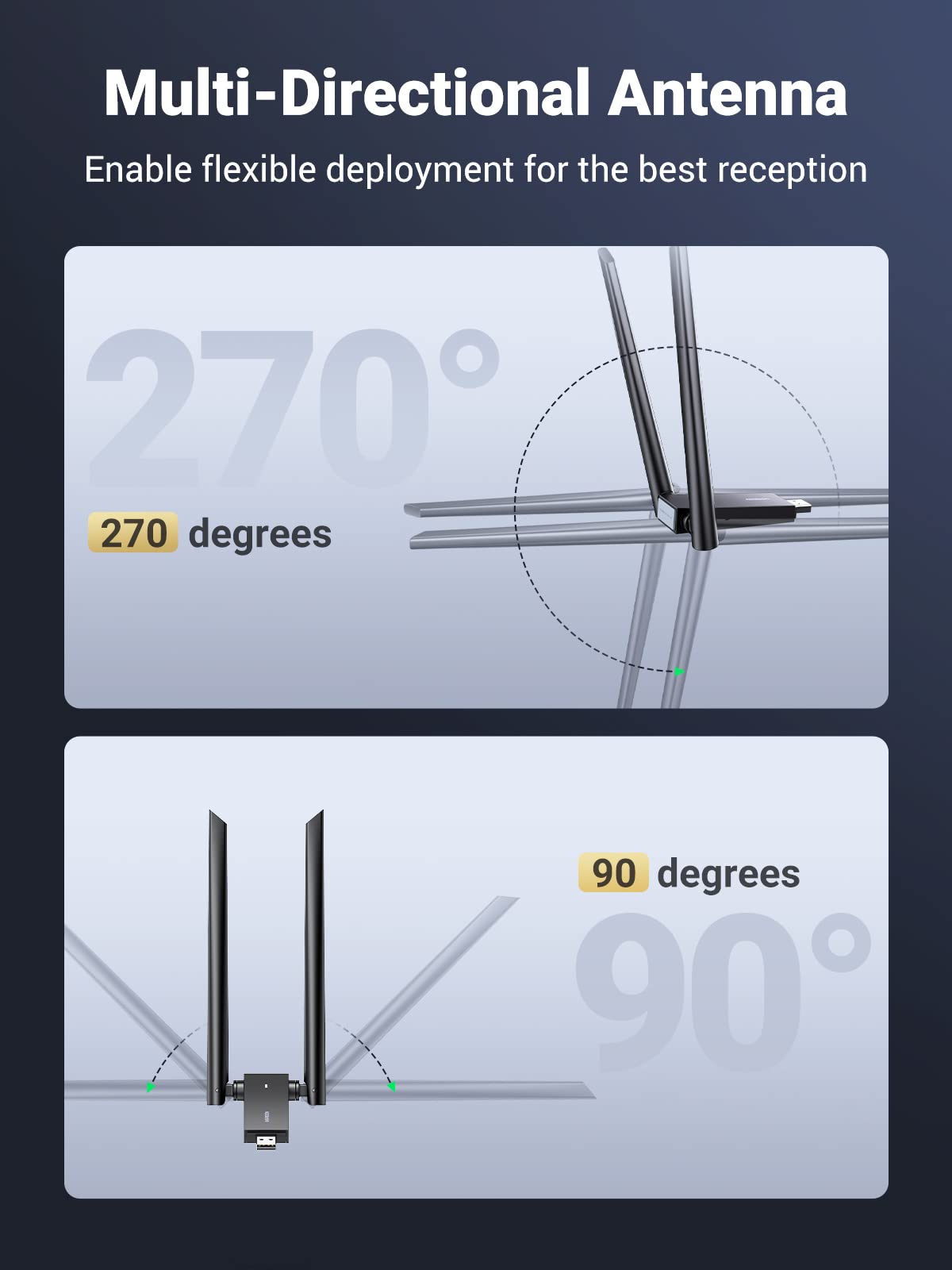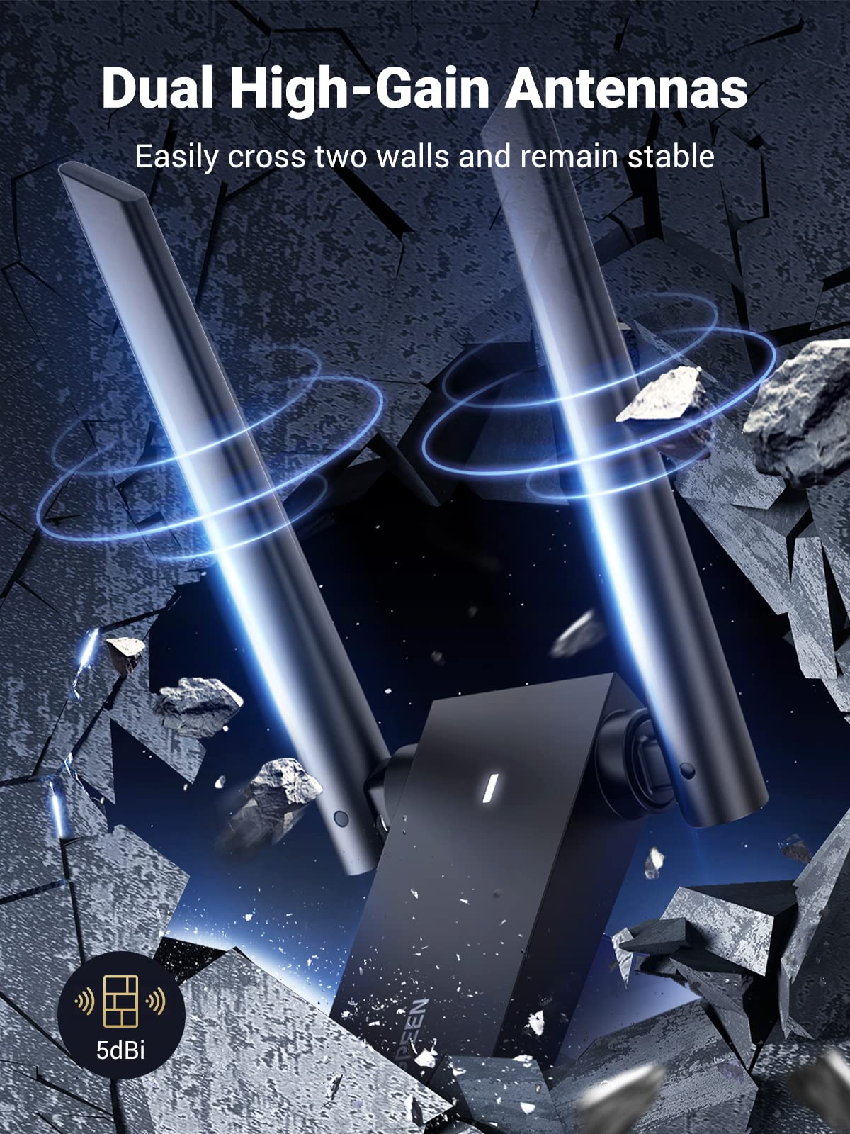 Still Troubled By An Unstable Wifi Network? Losing The Wifi Signal Due To Being Too Far From The Router? Download Or Upload Speed Is Too Slow? All You Need Is A Ugreen Ac1300 Wifi Adapter. Why Choose Ugreen Ac1300 Usb 3.0 Wifi Adapter: 2 Adjustable 6Dbi High Gain Antennas For A Stable Wifi Signal. 1300Mbps High Speed Without Loading And Loss. Signal Coverage Up To 50M. 5G/2.4G Dual-Band For Different Situations. Plug And Play For Windows 11/10. The Compact Mini Size Meets The Needs Of Carrying. Ap Mode Can Convert Your Wired Computer Into A Wifi Hotspot.
