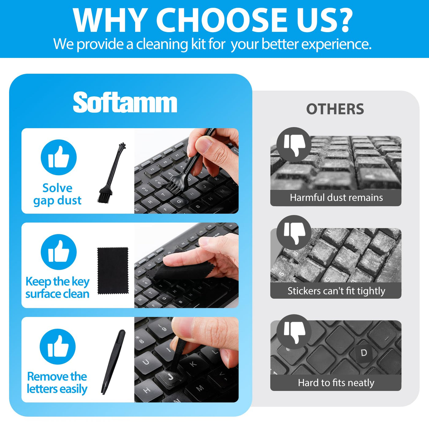 The Keyboard Stickers English Are Especially Designed For Any Computer Keyboards And Perfectly Fit For Desktops, Which Include Pcs Like Desktop Wired Keyboard, Desktop Wireless Keyboard, Laptop Keyboard, Notebook Keyboard Adventages: 1.Made Of Wear-Resistant Pc Material.Stickers Are Made Of High-Quality Non-Transparent Matt Vinyl,Long-Lasting,Durable Coating, Provides A Better Touching And Typing Experience, Will Not Wear Or Fade After Normal Use For A Long Time. 2.Matte Process, Giving Unparalleled Typing Response. In Addition, The Matte Texture Makes You More Comfortable To Use. 3.Fit A Various Of Computer Keyboards 4.White Lettering On The Black Background Which Is Good For Perception. 5.Super-Easy To Use, Just Attach Them To The Keyboard After Cleaning The Keyboard. No Residue Leaves On Your Keyboard When You Remove It. 6.Its A Great Way To Update Your Keyboard Worn-Out Letter Keys With A Different Fresh New Look. Because You Don'T Need To Repurchase The Keyboard, Just Tear And Stick To Get A Brand New Keyboard Right Away. Package Product Size: 7.09'' X 2.56'' (180Mm X 65Mm) Small Sticker Size: 0.51'' X 0.43'' (11Mm X 13Mm)