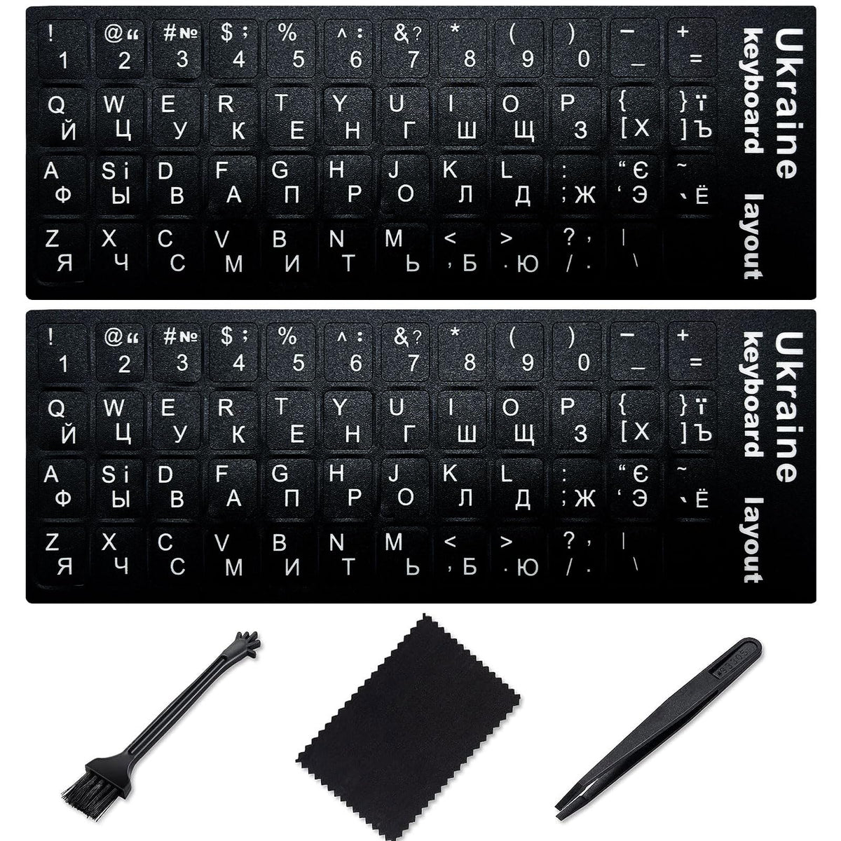 Ukrainian Keyboard Stickers[5 In 1],Ukraine Keyboard Sticker With White Letter/Black Background,Matte Vinyl Russian Belarus Keyb