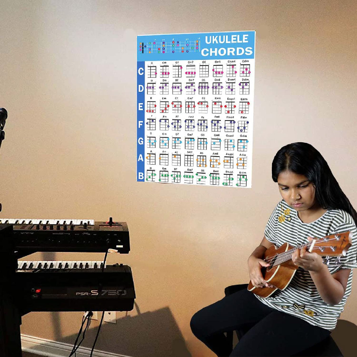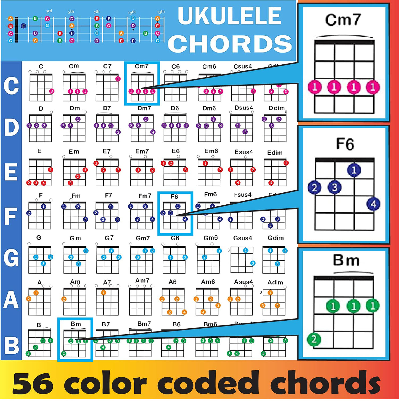 Ukulele Chords Poster, An Educational Reference Guide For Ukulele Players And Teachers, Printed On Waterproof, Non Tearing, Poly