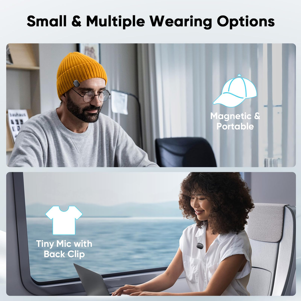 Ulanzi A30 Tiny Mic Magnetic (Black), Wireless Lavalier Microphone Mini Size, Noise Cancellation, 164 Ft Range, 20H Battery Life
