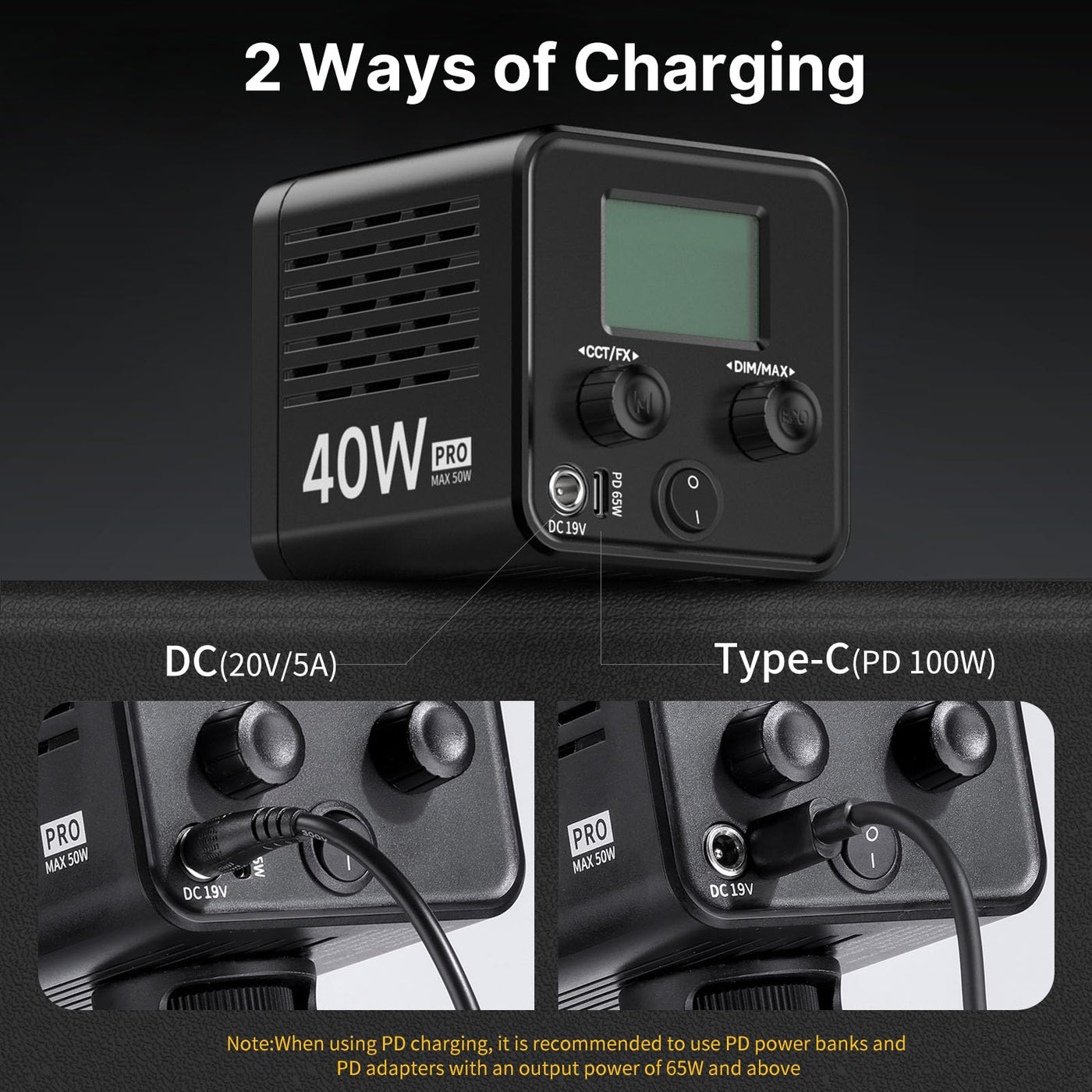 Ulanzi L023 40W Pro Led Video Light W Built In 3400Mah Battery & Pd Fast Charging, Portable Overlock 50W Cob Light, Handheld Bic