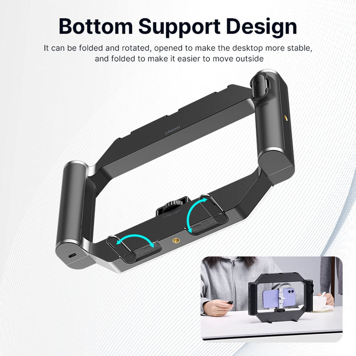 Ulanzi U-Rig Smartphone Video Rig With Light Two-Handed Camera Fill Light, Stabilization And Anti-Shake 20M Remote Control, One-Button Shooting 2500K-9000K Dual Color Temperature And Brightness Adjustment, Cri 90+ Type-C Fast Charge, 5000Mah Battery Capacity Power Bank Function: Can Also Be Used As A Mobile Power Supply To Charge Other Devices Mobile Phone / Mirrorless Camera, Switch At Will Bottom Support Design Rich Compatibility Personality Expansion: Cold Shoe, 1/4 Screw, And 1/4 Screw Hole